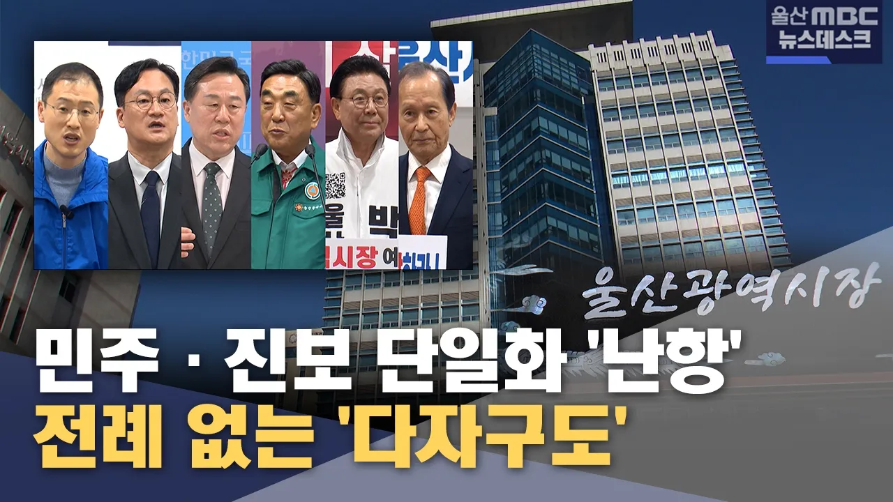 주요뉴스 민주·진보도 단일화 '난항'‥ 역대급 '다자구도' [앵커]울산시장 선거가 전례 없는 다자구도 양상으로 전개되고 있습니다.국민의힘 내분 여파로 보수 진영이 갈라진데 이어, 더불어민주당과 진보당의 단일화도 경기 평택을 보궐선거 여파로 난항을 겪게 됐습니다.여기에 조국혁신당도 시장 선거에 뛰어들었고 개혁신당 창당도 가시화될 전망입니다.최지호 기자.[리포트]내... 정비 중 화재 '홍범도함'‥ 사고 원인 나올까 MBC뉴스데스크 173 정장 교복 확 줄까?‥ "편한 교복 입자" MBC뉴스데스크 63 울산 웨일즈, 연승 마감.. 내일부터 함평 원정 MBC뉴스데스크 78 울주군, 지역사회보장계획 수립 용역 착수 MBC뉴스데스크 31 수암한우야시장 17일 개장… 5월까지 금·토 운영 흐린 날씨 이어져‥ 강한 바람 주의 민주당 부울경 시도지사 후보 "메가시티 즉시 복원" 중동 위기 대응 소상공인 300억 금융 지원 조선업 핵심 인재 2천 명 양성‥ 300억 투입 노동자 숨진 홍범도함 화재 현장 합동감식 성내고가교서 트럭·경차 충돌‥ 60대 운전자 사망 차량 소유 숨기고 기초생활비 받은 50대 집행유예 울산지역 유실물 반환율 3년 연속 전국 1위 기획·연속 보도 [되돌아본 뉴스] '콩나물 교실' 옛말 같지만‥ 불균형 심화 MBC뉴스데스크 155 [되돌아본 뉴스] 귀향버스부터 해외여행까지.. 달라진 명절 이동 MBC뉴스데스크 204 [연속기획③] '대세론' 속 '신중론'‥ 행정통합 해법은? MBC뉴스데스크 215 [연속기획 ②] 대한민국 경제 심장 울산‥ 시민 삶의 질은? MBC뉴스데스크 873 [연속기획①] 2%가 짊어진 무게‥ 힘차게 뛰는 산업 심장 MBC뉴스데스크 207 [되돌아본 뉴스] '전형적'에서 '극과 극' 달라지는 겨울 MBC뉴스데스크 238 [결산2025] 키워드로 돌아본 '2025 울산 스포츠' MBC뉴스데스크 273 [결산 2025] 끝나지 않은 '내란세력 청산'‥ 지방선거 화두로 MBC뉴스데스크 224 [결산 2025] 끊이지 않는 산재 참사‥ 대형 산불에 폭우까지 MBC뉴스데스크 312 [결산 2025] 기대 모은 '공룡 조선소'‥ 남은 과제는? MBC뉴스데스크 639 영상스케치 연분홍 연꽃, 사진에 담다 [영상스케치] 197 울산 겹벚꽃 명소 [영상스케치] 195 04.16 기억과 추모 [영상스케치] 139 울산에 또 무슈샤가 [영상스케치] 170 TV 프로그램 prev next 서머페스티벌 체인지 UP 목 21시 00분 울산의 변화와 발전을 위해 우리가 나아가야 할 방향은? 바뀌고(change), 발전될(up) 울산을 꿈꾸며 [체인지UP]이 함께 합니다. 울트라 월 화 수 18시 05분 6시 내고향 울산의 생생한 정보는 울트라가 전한다고 전해라~ 내가 사는 동네에서 벌어지는 별나고 재미난 이야기 아낌 없이 대방출! 심심하고 삼삼한 울산의 저녁을 웃음과 감동으로 채워드립니다. JUMP 울산 금 17시 55분 새롭게 바뀐 2025 JUMP 울산!!매주 금요일 17:55 ~ 18:05에 만날 수 있습니다.YOUTUBE '울산MBC' 채널에서도 만날 수 있습니다!! 더보기 Radio 프로그램 prev next 더보기 뉴미디어 문화행사 prev next 더보기 공지사항 울산MBC UHD방송 수신 안내 2026-04-01 13:54 AM방송국 중단안내 2026-03-30 16:50 2026 월드 베이스볼 클래식(WBC) 기간중 TV OnAir 서비스 중단 안내 2026-02-27 10:44 2026년도 울산MBC 시청자위원 공개모집[마감] 2025-12-08 10:23 2026년 사원 공개채용 공고[마감] 2025-11-17 11:06 더보기