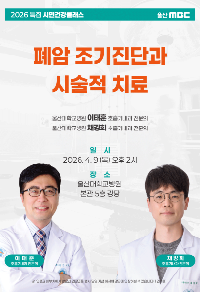 주요뉴스 김두겸 출마 연기‥ "민생 안정 우선" [앵커]김두겸 울산시장이 지방선거 출마를 위한 시장직 사퇴를 연기하고 중동발 위기에 우선 대응하기로 했습니다.출마 선언은 5월 초가 될 전망인데, 한 달 사이 국민의힘 내부의 복잡한 정세를 극복하고 보수 단일화로 승부수를 띄울 수 있을지 주목됩니다.최지호 기자.[리포트]국민의힘 울산시장 후보로 단수공천을 받은... 아파트 단지에서‥ 초등학생 차에 치여 숨져 MBC뉴스데스크 126 벼랑 끝 지역방송‥ "균형발전 공공 인프라로" MBC뉴스데스크 51 대형마트 판매 4달 만에 증가‥ 설 연휴 영향 MBC뉴스데스크 35 현대차, 58년 만에 울산공장 일부 재건축 MBC뉴스데스크 138 HD현대중 영업이익 2조 427억 원‥ 주당 3,990원 배당 근로자 1만 명당 사망 비율‥ 울산이 가장 높아 울산 웨일즈, 첫 우천 취소에 즉석 사인회 오전까지 '봄비' 이어져‥ '풍랑주의보' 주의 김두겸 시장 사퇴 연기‥ "민생 챙기기 총력" 울산대교 통행료 1년 더 동결‥ 117억 원 보전 울산 주유소 기름값 최고가 2천 원 넘어 아파트 단지에서 초등학생 차량에 치여 숨져 "울주군 민간 임대주택 허위·과장광고 주의" 기획·연속 보도 [되돌아본 뉴스] '콩나물 교실' 옛말 같지만‥ 불균형 심화 MBC뉴스데스크 131 [되돌아본 뉴스] 귀향버스부터 해외여행까지.. 달라진 명절 이동 MBC뉴스데스크 191 [연속기획③] '대세론' 속 '신중론'‥ 행정통합 해법은? MBC뉴스데스크 207 [연속기획 ②] 대한민국 경제 심장 울산‥ 시민 삶의 질은? MBC뉴스데스크 852 [연속기획①] 2%가 짊어진 무게‥ 힘차게 뛰는 산업 심장 MBC뉴스데스크 185 [되돌아본 뉴스] '전형적'에서 '극과 극' 달라지는 겨울 MBC뉴스데스크 220 [결산2025] 키워드로 돌아본 '2025 울산 스포츠' MBC뉴스데스크 262 [결산 2025] 끝나지 않은 '내란세력 청산'‥ 지방선거 화두로 MBC뉴스데스크 214 [결산 2025] 끊이지 않는 산재 참사‥ 대형 산불에 폭우까지 MBC뉴스데스크 302 [결산 2025] 기대 모은 '공룡 조선소'‥ 남은 과제는? MBC뉴스데스크 608 영상스케치 연분홍 연꽃, 사진에 담다 [영상스케치] 180 울산 겹벚꽃 명소 [영상스케치] 145 04.16 기억과 추모 [영상스케치] 125 울산에 또 무슈샤가 [영상스케치] 154 TV 프로그램 prev next 울트라 월 화 수 18시 05분 6시 내고향 울산의 생생한 정보는 울트라가 전한다고 전해라~ 내가 사는 동네에서 벌어지는 별나고 재미난 이야기 아낌 없이 대방출! 심심하고 삼삼한 울산의 저녁을 웃음과 감동으로 채워드립니다. JUMP 울산 금 17시 55분 새롭게 바뀐 2025 JUMP 울산!!매주 금요일 17:55 ~ 18:05에 만날 수 있습니다.YOUTUBE '울산MBC' 채널에서도 만날 수 있습니다!! 서머페스티벌 체인지 UP 목 21시 00분 울산의 변화와 발전을 위해 우리가 나아가야 할 방향은? 바뀌고(change), 발전될(up) 울산을 꿈꾸며 [체인지UP]이 함께 합니다. 더보기 Radio 프로그램 prev next 더보기 뉴미디어 문화행사 prev next 더보기 공지사항 AM방송국 중단안내 2026-03-30 16:50 2026 월드 베이스볼 클래식(WBC) 기간중 TV OnAir 서비스 중단 안내 2026-02-27 10:44 2026년도 울산MBC 시청자위원 공개모집[마감] 2025-12-08 10:23 2026년 사원 공개채용 공고[마감] 2025-11-17 11:06 울산MBC 2025 뉴스디렉터 최종합격자 공고 2025-03-31 11:34 더보기