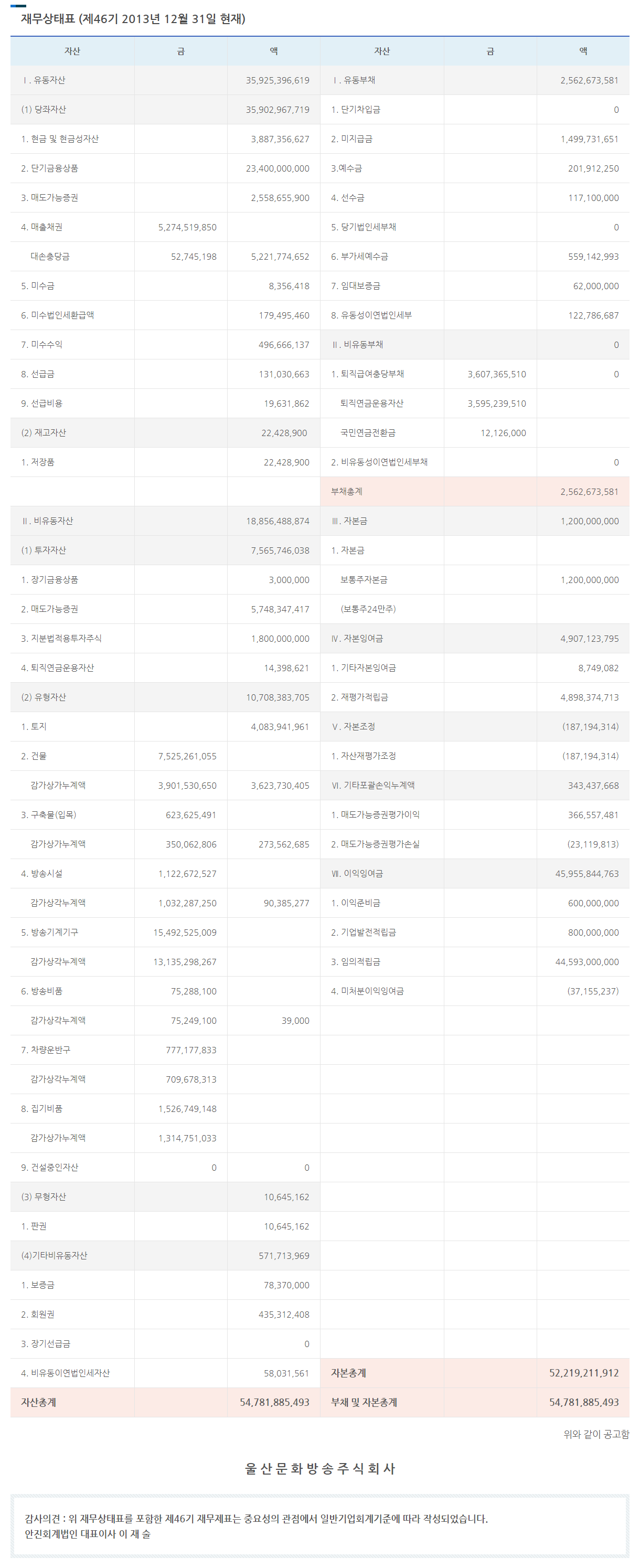 2013년 결산공고