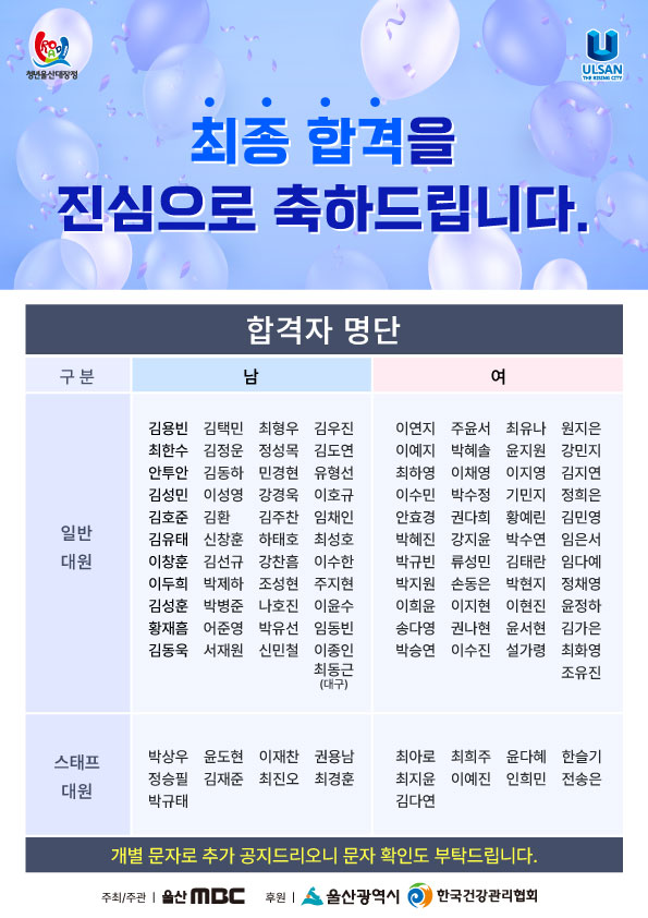 청년울산대장정 유로드 최종합격자 발표
