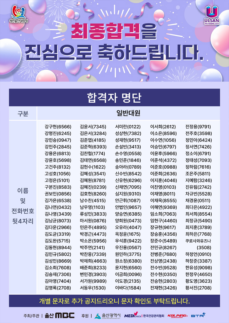 2023 청년울산대장정 U-Road 최종합격자 발표
