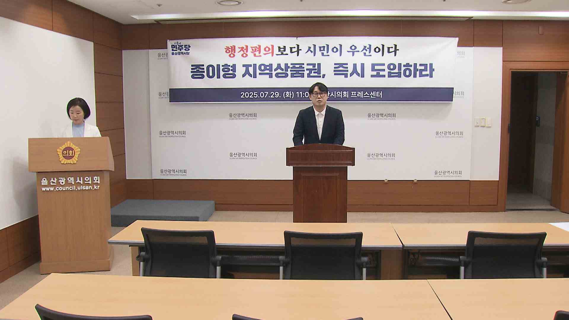 더불어민주당 울산시당은 오늘(7/29) 기자회견을 갖고 이번 민생회복 소비쿠폰 지급 과정에서 종이형 지역상품권 도입의 필요성이 제기됐다고 밝혔습니다. 민주당은 노점상이나 노년층 소비자 모두 카드 보다는 종이형 상품권을 더 원하고 있다며, 2차 소비쿠폰 지급 때는 종이형 상품권 도입을 울산시에 제안했습니다.