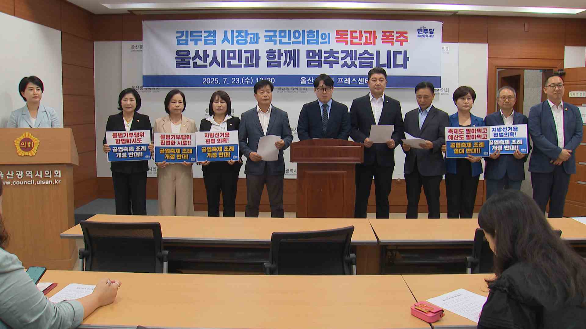 국민의힘 소속 울산시의원들은 오늘(7/24) 기자회견을 열고 공업축제 관련 조례 개정과 관련해 의도적인 왜곡을 중단하라고 요구했습니다. 이들은 현행법상 사생대회에 참가한 어린이에게 도화지 한 장 제공할 수 없다며 이 같은 문제를 바로잡기 위한 조례 개정이라고 설명했습니다. 또 문제를 제기한 더불어민주당을 향해...
