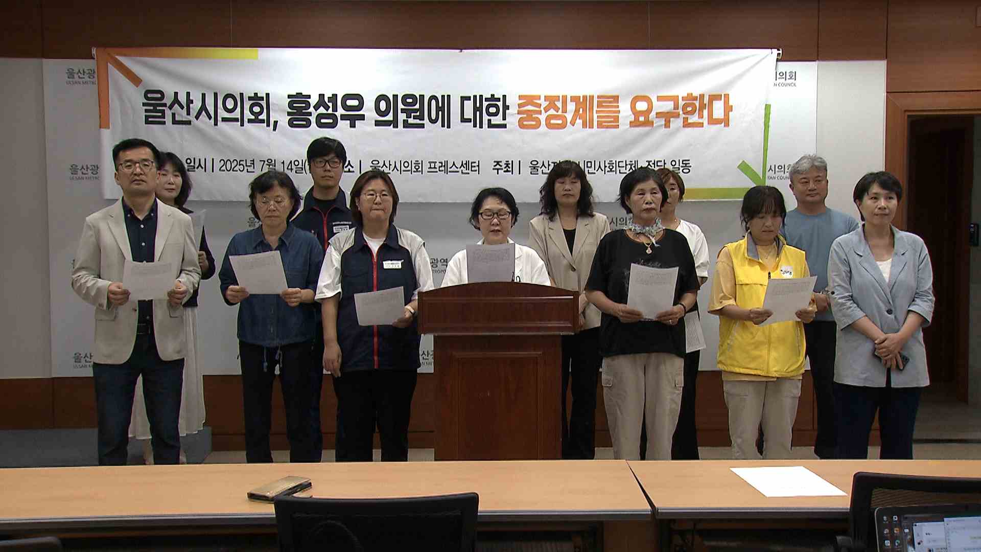 울산시민연대는 오늘(7/14) 기자회견을 열고 음주운전으로 면허가 취소된 뒤 무면을 운전을 한 홍성우 의원에 대해 중징계를 촉구했습니다. 시민연대는 내일 본회의에서 홍 의원에 대해 경징계인 '경고'가 의결될 예정이라며, 이는 시민의 대의기구가 불공정을 조장하는 것이라고 주장했습니다. 일반 공무원의 경우 음주나 ...