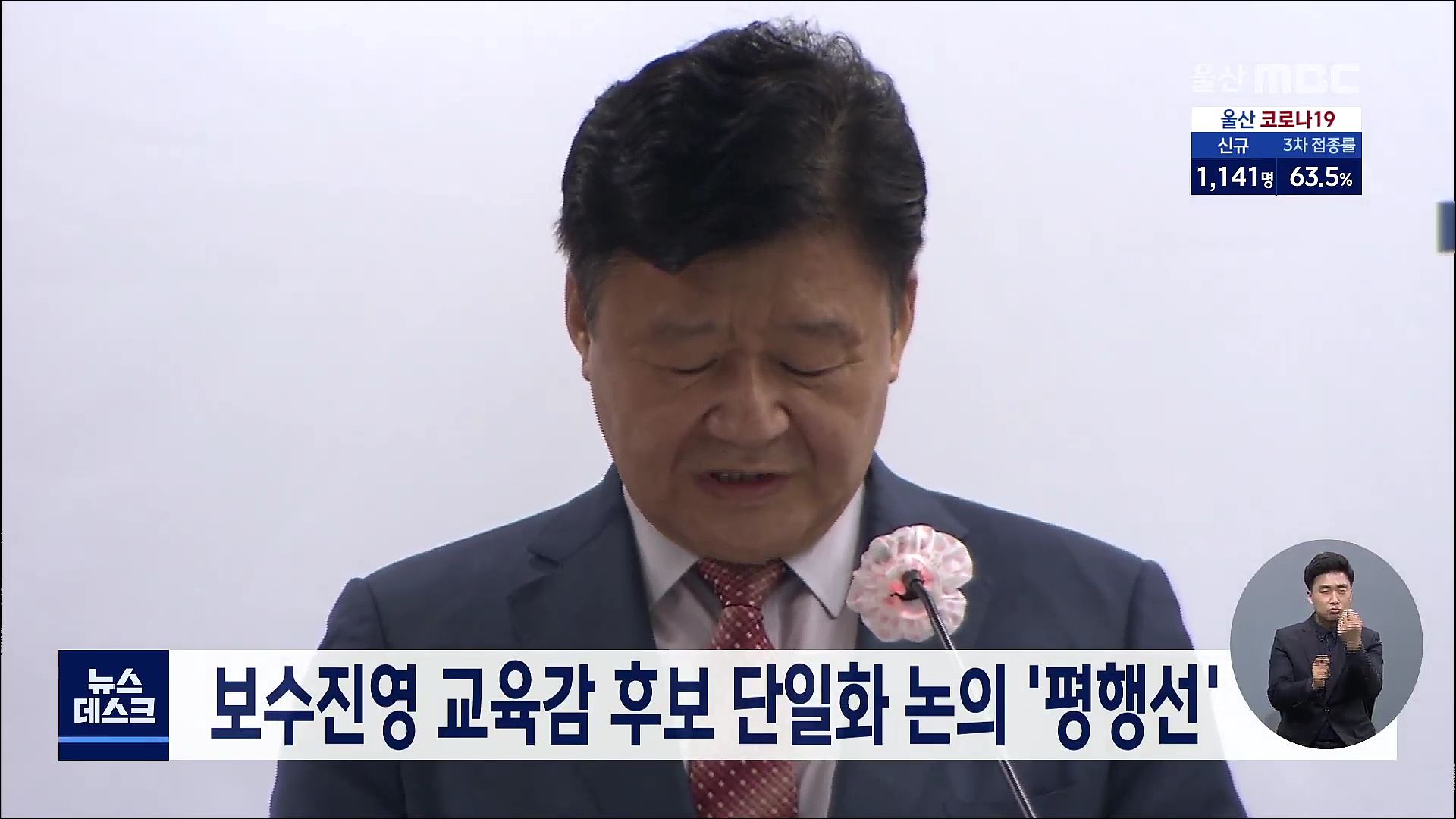 보수를 표방한 교육감 후보들이 단일화 방안을 놓고 자기 주장을 굽히지 않고 있습니다. 울산혁신교육연구소 소장인 장평규 후보는 오늘(4/28) 공약 발표 기자회견을 하면서 양자TV토론은 받아들일 수 없으며 후보끼리 만나 좋은 안을 만들자고 밝혔습니다. 울산대 명예교수인 김주홍 후보는 어제(4/27) 공약 발표 기자회견...