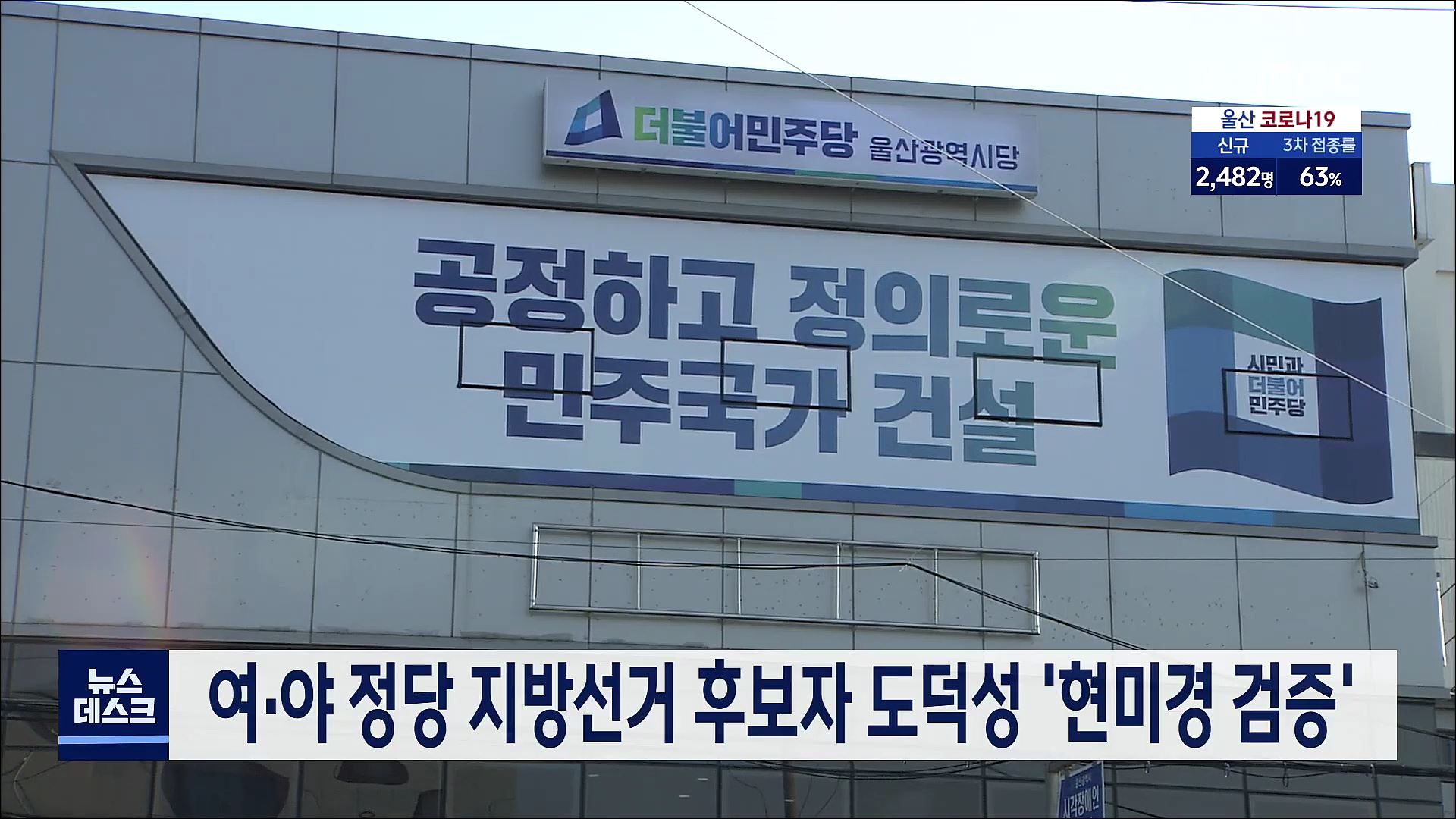 여야 정당들이 이달부터 지방선거 후보 공모 절차에 돌입한 가운데, 후보자 도덕성 검증에 무게를 둘 것이라고 밝혔습니다. 더불어민주당 울산시당은 후보자 검증소위원회를 설치해 강력범죄와 성범죄자, 음주운전 전력자를 가려내기로 했습니다. 국민의힘도 공천관리위원회를 중심으로 후보 자격을 철저하게 검증한 뒤 조...