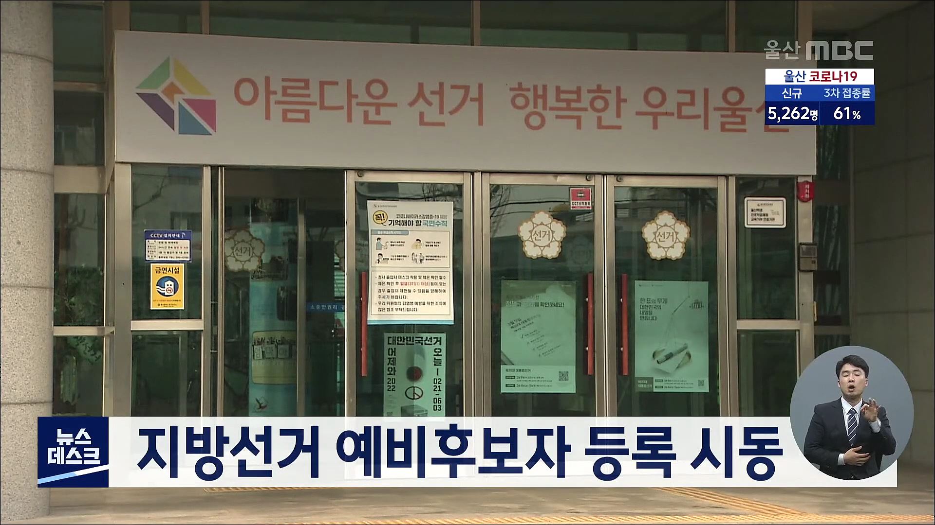 대선이 끝나면서 울산에서 6.1 지방선거 예비후보자 등록이 속도를 내고 있습니다. 울산시장 예비후보자에 국민의힘 정갑윤 전 국회부의장과 김두겸 전 남구청장이 등록했고, 중구청장 예비후보자에 국민의힘 정창화, 문병원 씨가 등록했습니다. 또 동구청장에는 국민의당 손삼호, 진보당 김종훈 씨가 등록을 마쳤고, 북구...
