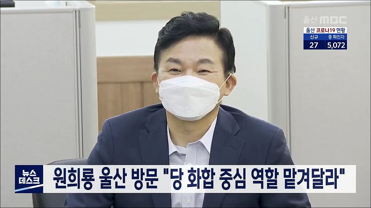 국민의힘 대선 경선주자인 원희룡 전 제주도지사가 오늘(9/25) 울산을 찾았습니다. 원희룡 전 지사는 구군 당협사무소를 차례로 방문해 당원들을 만나고 지지를 호소했습니다. 원 전 지사는 당내 경선 과정에서 후보 간 갈등을 해소하고 당의 역량을 하나로 뭉칠 인물이 필요하다며 자신이 경선 4강에 들 경우 당을 화합하...