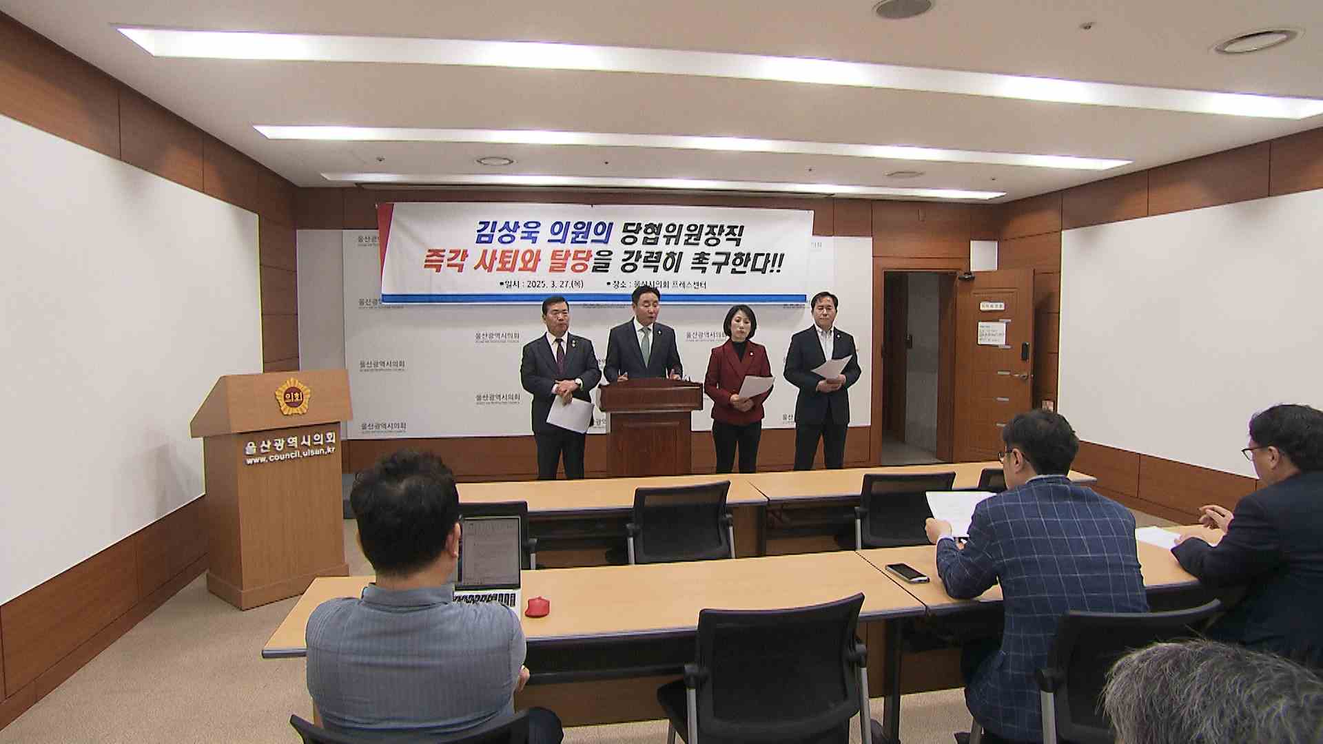 국민의힘 남구갑 소속 지방의원들은 오늘(3/27) 기자회견을 열고 김상욱 의원의 당협위원장직 즉각 사퇴와 탈당을 요구했습니다. 이들은 당협 정상화를 위해 비대위를 구성하고 당협위원장 사퇴 촉구와 당원협의회 승인 취소 요구 안건을 의결한 뒤 이를 울산시당에 보고했다고 밝혔습니다. 그러면서 김상욱 의원은 당협위...