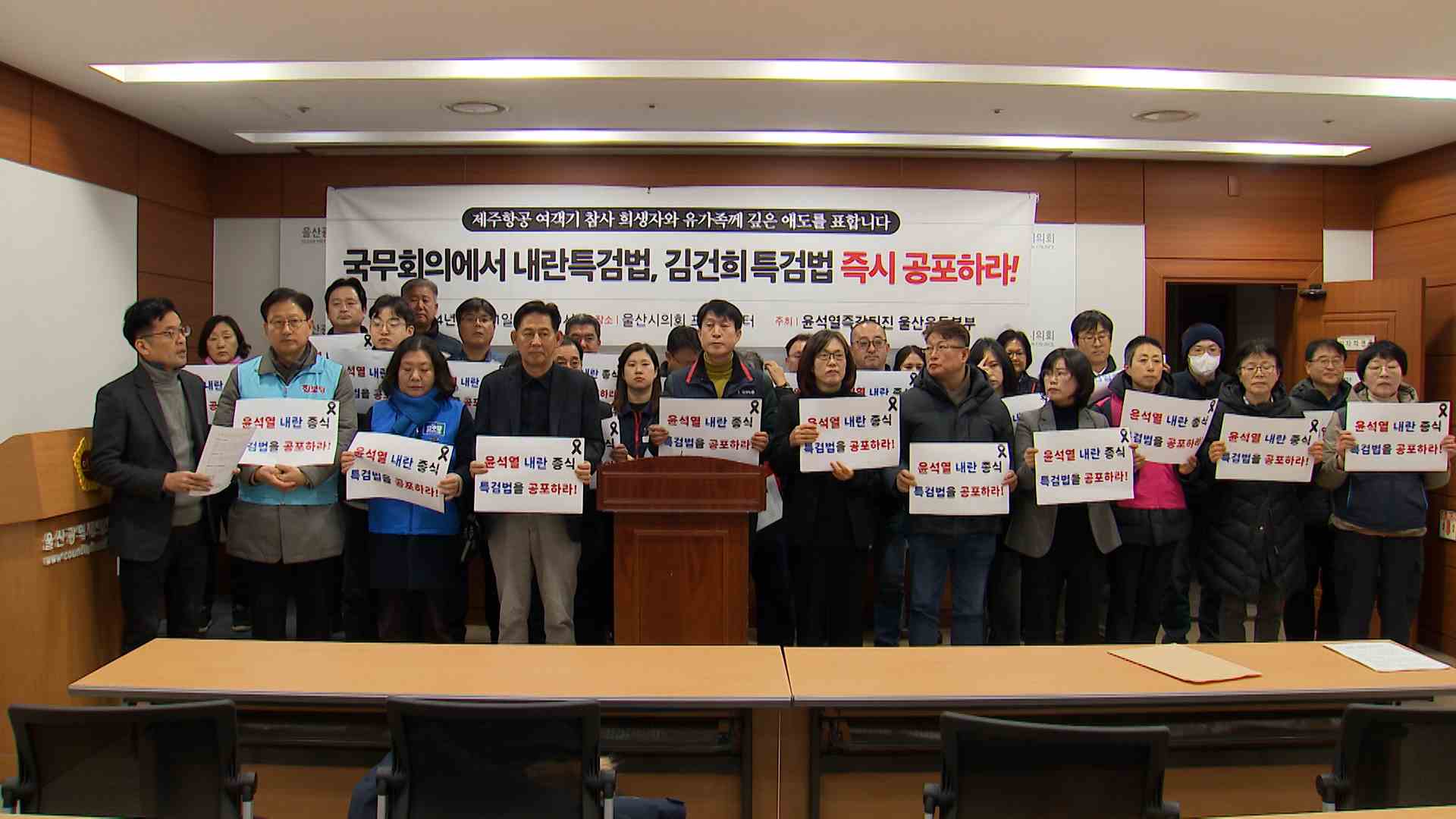 윤석열즉각퇴진 울산운동본부는 오늘(12/30) 국민의힘 소속 홍유준 울산시의회 의원을 내란 선동 혐의로 경찰에 고발했습니다.본부는 홍 의원이 내란죄 수사가 진행되고 있는 윤석열 대통령의 탄핵을 반대하는 현수막을 자신의 지역구 9곳에 내걸은 것은 형법 제90조에서 규정한 내란 선동과 선전에 해당한다고 주장했습니...