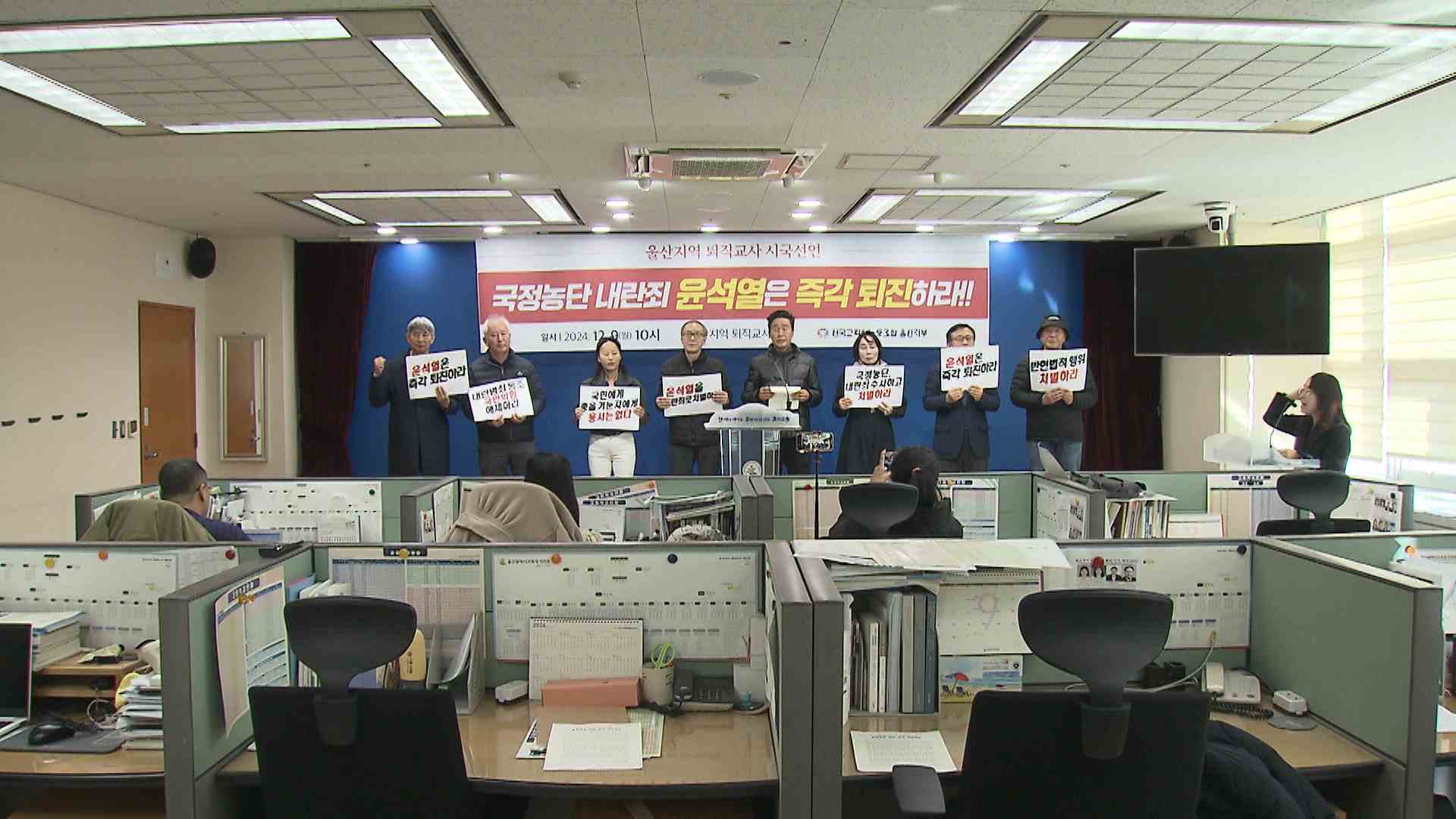울산지역 퇴직 교사 112명이 오늘(12/9) 기자회견을 열고 윤석열 대통령의 즉각 퇴진을 촉구하는 시국선언문을 발표했습니다. 이들은 전국에서 거리집회와 시국선언이 이어지고 있다며 대통령의 내란 범죄는 국민이 참을 수 있는 범위를 넘어섰다고 강조했습니다. 앞서 지난 5일 울산대 교수들이 시국선언문을 발표하고, UN...