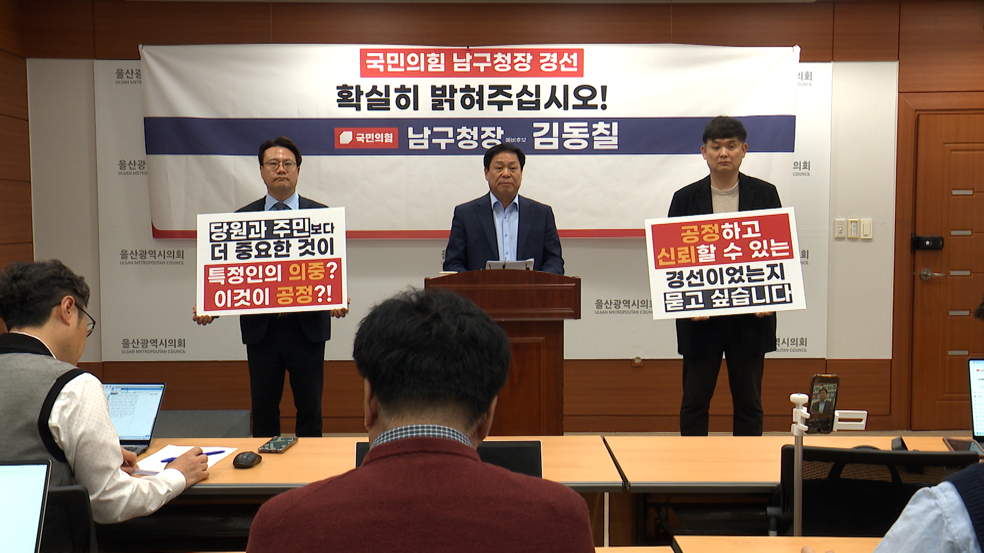 국민의힘 당내 경선에서 탈락한 김동칠 남구청장 예비후보가 불공정 경선 의혹을 제기하고 나섰습니다.김 후보는 경선 투표를 앞두고 '박맹우 전 시장의 무소속 출마를 막아주면 남구청장 후보로 만들어 줄 수 있다'는 제안을 받았다며, 이는 곧 경선 결과를 조작할 수 있다는 뜻이라고 주장했습니다.또, 선거 캠프에서 자...