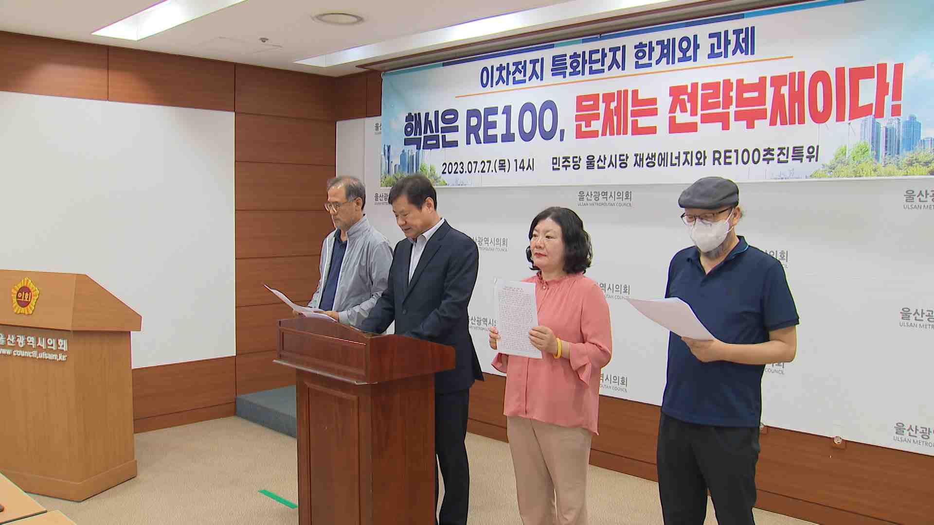 더불어민주당 울산시당은 오늘(7/27) 울산시의회에서 기자회견을 갖고 울산 이차전지 특구가 성공하려면 RE100을 달성해야 한다고 제언했습니다. 민주당은 울산이 이차전지 전주지 밸류체인을 갖추고 있다 하더라도 RE100을 달성해야 성과를 낼 수 있다며 부유식 해상풍력 사업이 그 해법이라고 주장했습니다. 또 국내 첫 ...