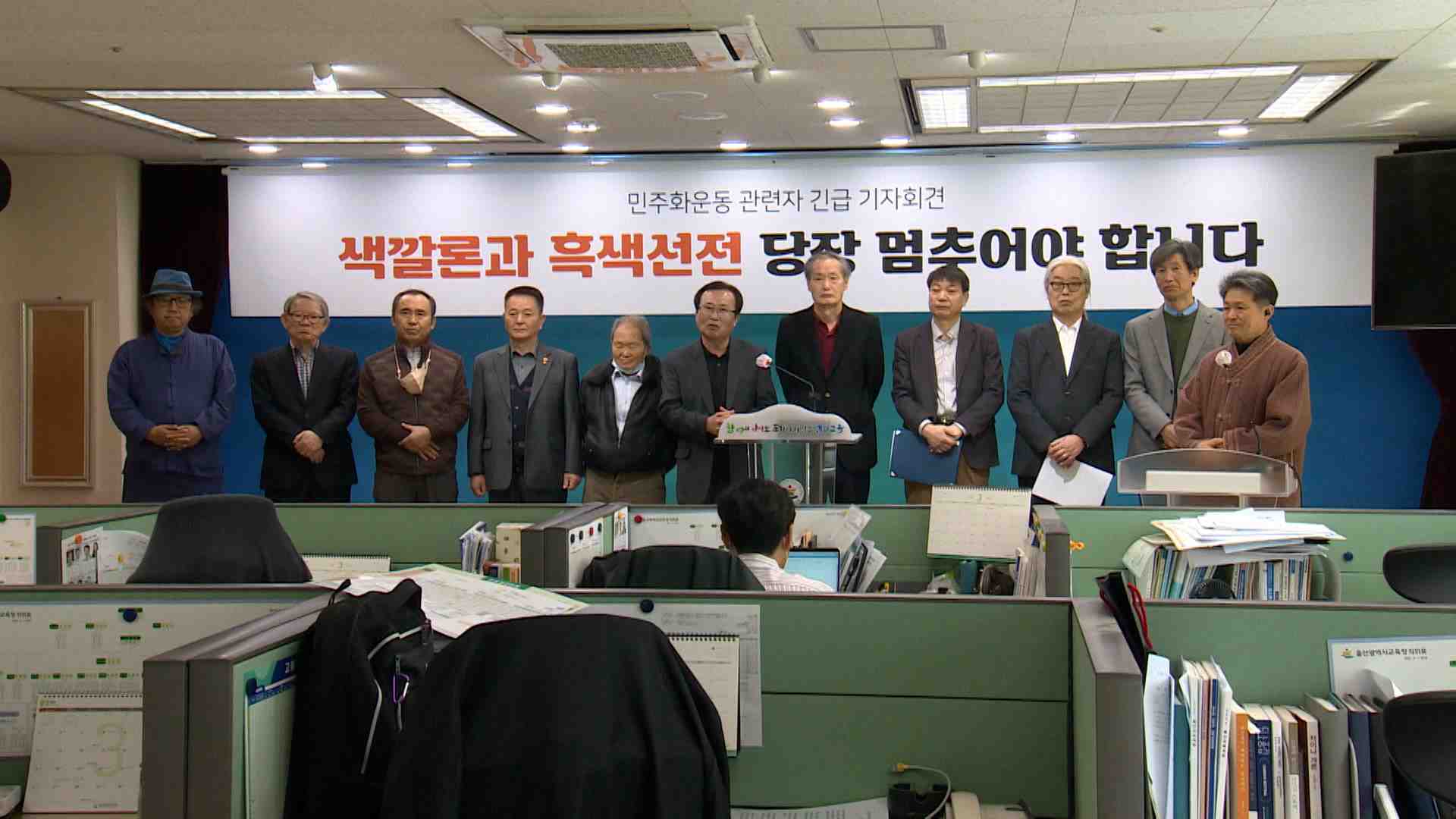 민주화운동 관련자들은 오늘(3/21) 울산시교육청에서 기자회견을 갖고 교육감 선거 과정에서 등장한 색깔론과 흑색 선전을 멈출 것을 촉구했습니다. 이들은 천창수 후보의 전과 3건이 모두 민주화 운동과정에서 발생한 것이라고 소명했음에도 불구하고 '전과 3범에게 우리 아이를 맡길 수 없다'며 범죄자 취급을 하는 것은 ...