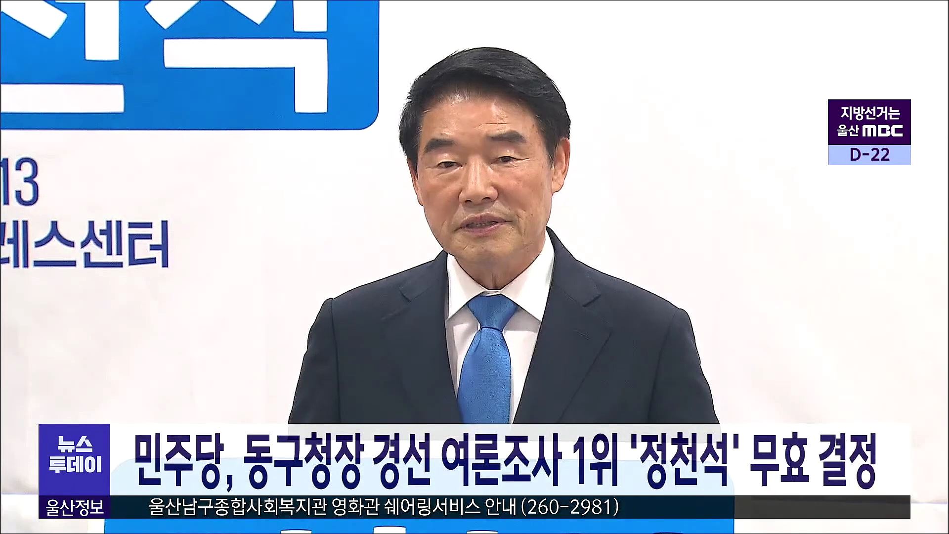 민주당, 동구청장 경선 여론조사 1위 '정천석' 무효 결정