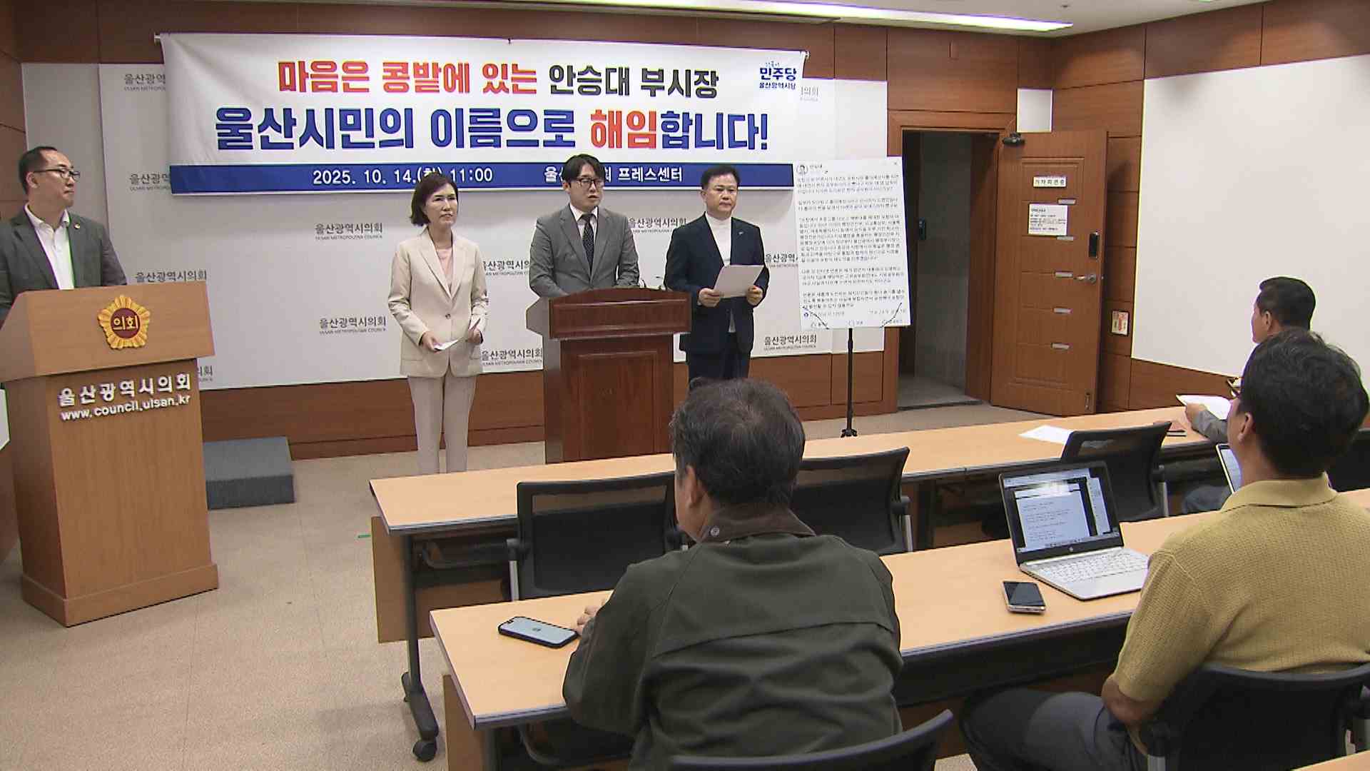 더불어민주당 울산시당은 오늘(10/14) 기자회견을 열고 포항 시장 출마 의사를 밝힌 안승대 행정부시장을 향해 거취 결정을 촉구했습니다. 민주당은 안 부시장의 최근 행보를 보면 포항시장 선거에만 전념하는 모습을 보여 왔다며 이는 그 자체로 직무유기라고 주장했습니다. 또 울산 부시장직을 포항시장 출마예정자의 발...