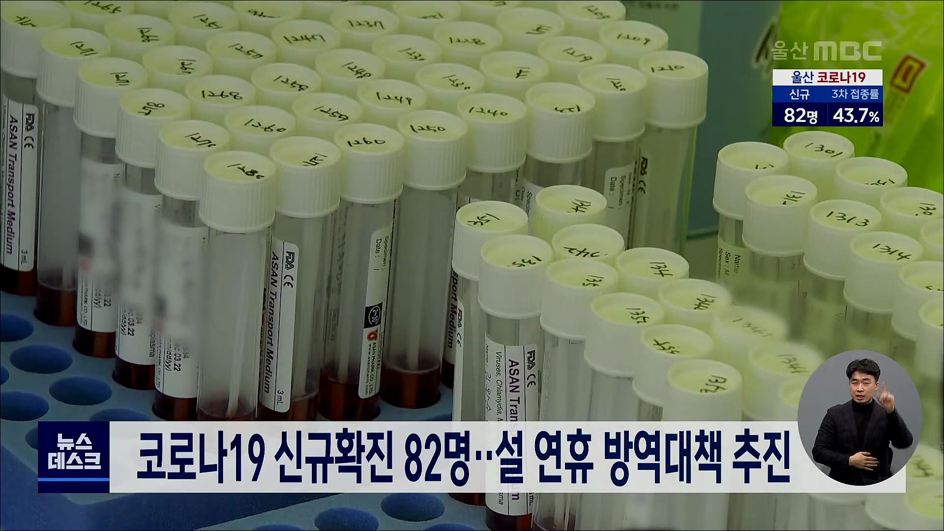 오늘(1/20) 울산에서는 코로나19 신규 확진자가 82명 발생했습니다. 울산생활과학고 유도부 집단감염 확진자가 1명 추가되었고, 이 집단감염에서 오미크론 변이 확진자도 모두 9명 발생했습니다. 이처럼 울산에서도 오미크론 변이 바이러스 확산이 본격화되자 울산시는 내일(1/21)부터 설 연휴 방역대책을 추진하기로 했습...