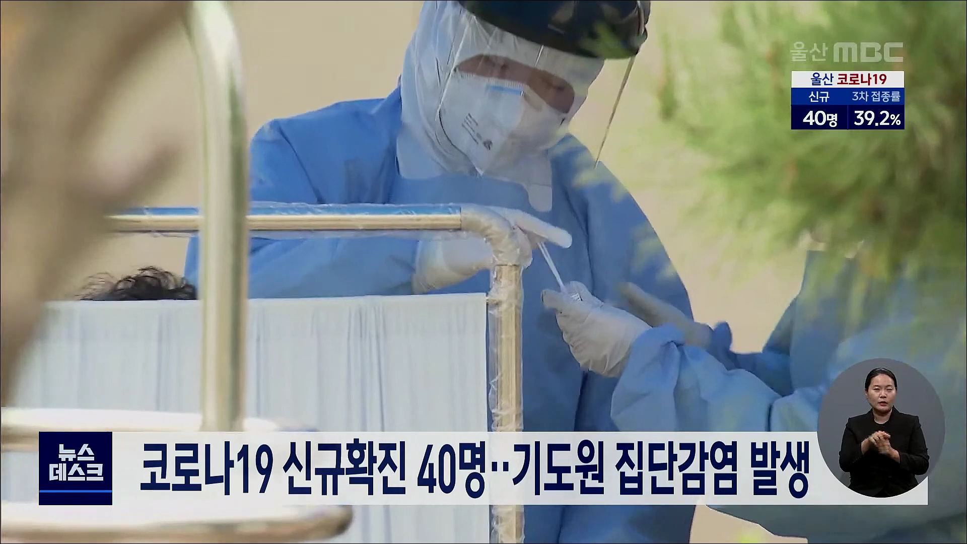 오늘(1/13) 울산에서는 현재까지 코로나19 신규 확진자가 40명 발생했습니다. 경남 양산의 감람산 기도원에서 집단 감염이 발생해 이곳을 방문했던 8명이 감염됐고 연쇄 감염자도 3명 발생했습니다. 또 해외 입국자 5명과 지역사회 감염자 2명 등 확진자 7명이 오미크론 변이 바이러스에 걸린 것으로 추가 확인됐습니다.