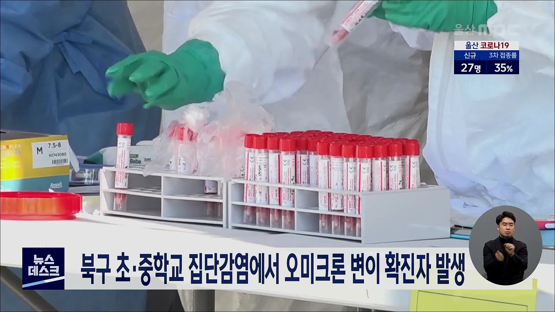 오늘(1/7) 울산에서는 코로나19 신규 확진자가 현재까지 27명 발생했습니다. 북구 유치원과 초등학교, 중학교 집단감염 연쇄 확진자가 2명 더 발생해 이 집단감염의 누적 확진자는 69명까지 늘어났습니다. 한편 이 집단감염 관련 확진자 중 1명이 오미크론 변이에 감염된 것으로 확인돼 방역 당국은 기존의 다른 확진자들도...