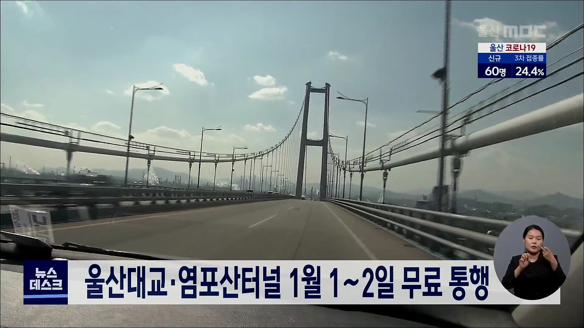 울산대교·염포산터널 1월 1∼2일 무료 통행