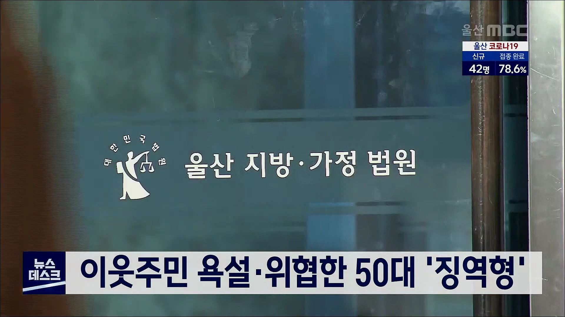 울산지법 김도영 판사는 이웃주민을 위협한 혐의로 기소된 50대 A씨에게 징역 1년을 선고했습니다. A씨는 지난 10월 남구의 한 아파트에서 이웃주민 B씨가 평소 자신을 괴롭힌다는 피해 의식에 사로잡혀 욕설을 하며 둔기로 위협한 혐의로 재판에 넘겨졌습니다. 재판부는 A씨가 지난 2020년에도 B씨 집을 찾아가 현관문과 ...
