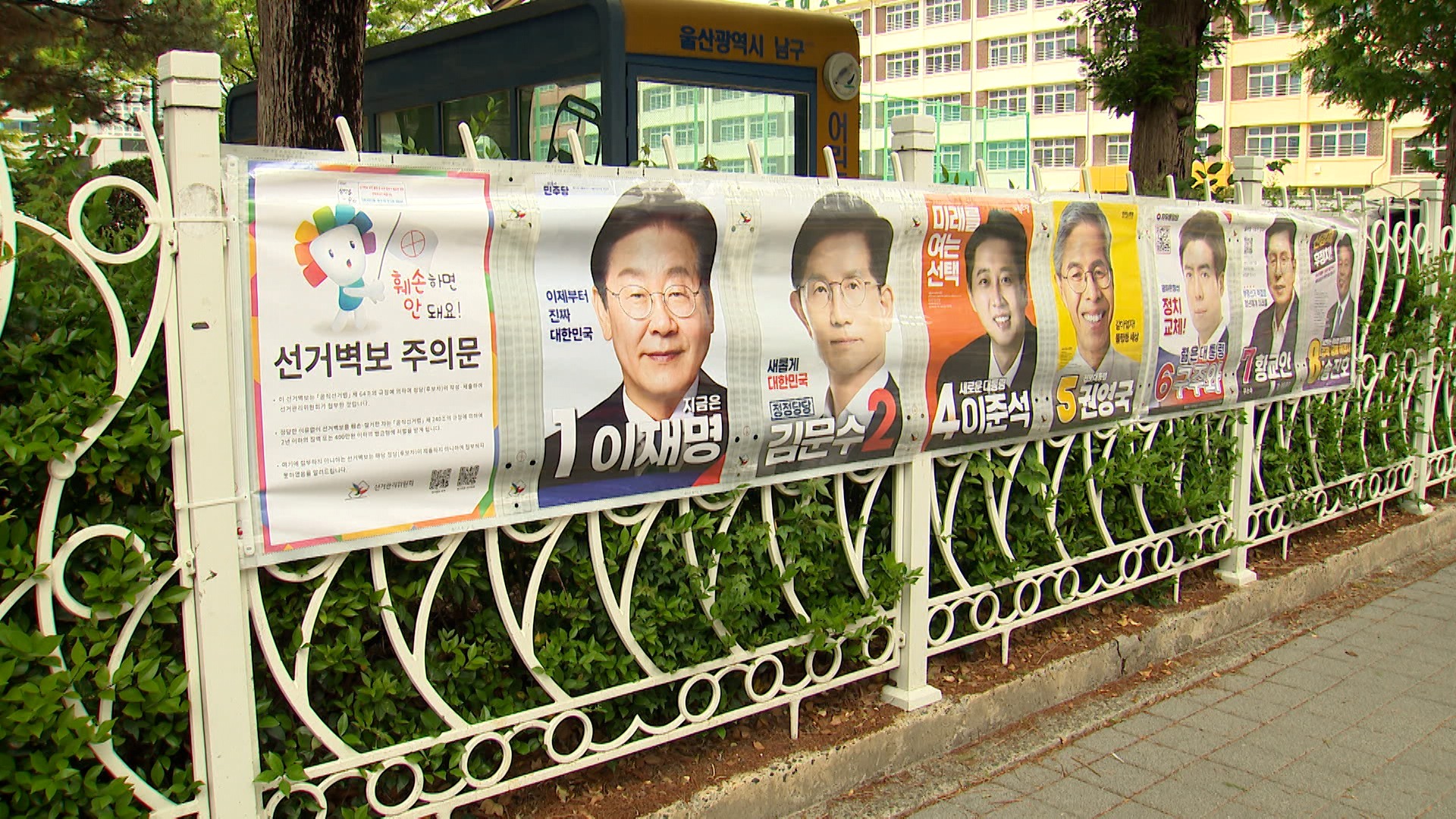 울산에서 더불어민주당 이재명 후보의 벽보가 잇따라 훼손돼 경찰이 수사에 나섰습니다. 울산경찰청은 오늘(5/18) 중구 폴리텍대학 인근 인도와 남구 달동에서 이재명 후보 벽보가 훼손된 채 발견됐습니다. 지난 16일에도 동구 화정동과 남구 중앙초등학교 인근에서도 벽보가 훼손됐다는 신고가 경찰에 접수되기도 했습니다...