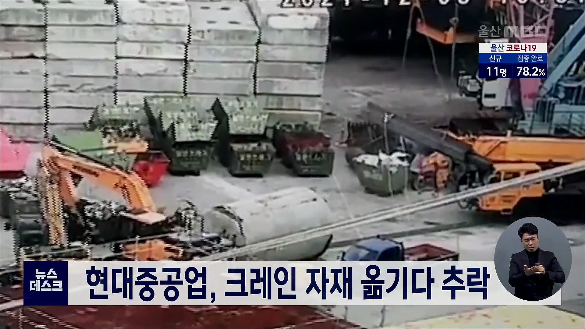 지난 3일 오후 3시쯤 현대중공업 해양사업부에서 크레인으로 부자재를 옮기는 작업 중 부자재가 갑자기 추락하는 사고가 났습니다. 이 사고로 인명 피해는 없었지만 작업 중이던 직원들이 긴급 대피했으며 회사와 노조는 크레인 안전점검 실태 등 사고 경위를 조사하고 있습니다.//