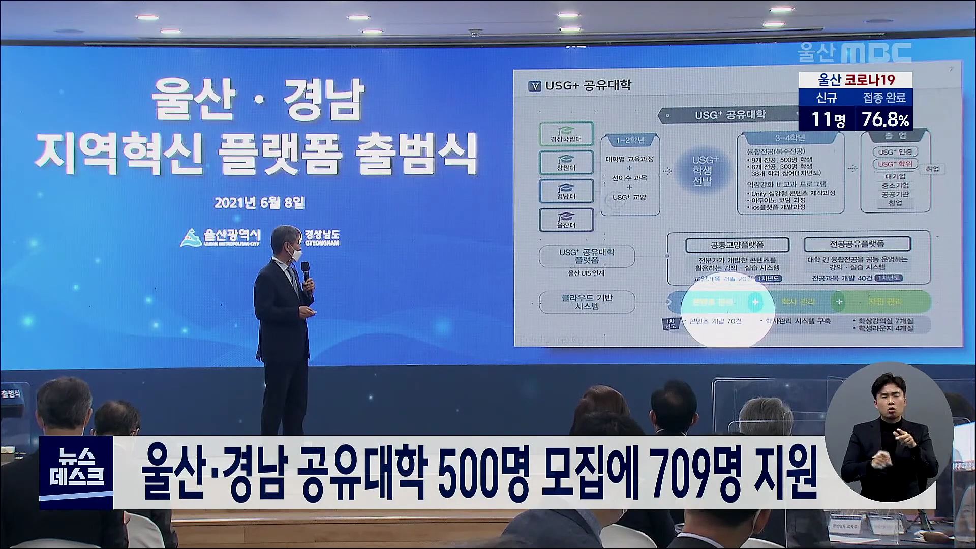 '울산·경남 지역혁신 플랫폼 사업'의 하나로 추진되는 USG 공유대학 학생 500명 모집에 709명이 지원해 모집율이 141%를 기록했습니다 특히, 울산대학교에서 운영을 주관하는 미래모빌리티 의 학생 모집율은 2.09대 1, 저탄소그린에너지는 1.38대 1을 기록했습니다. USG 공유대학은 울산·경남지역 대학과 지역혁신기관이 참...