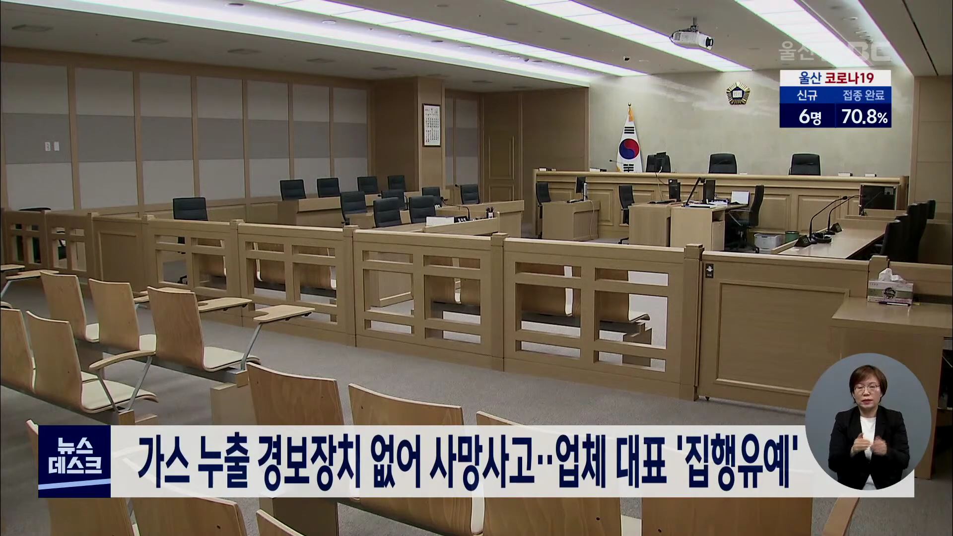울산지법 형사3단독 김용희 판사는 가스 누출 경보장치를 설치하지 않아 노동자를 숨지게 한 혐의로 기소된 산업폐기물 처리업체 대표 A씨에게 징역 1년에 집행유예 2년, 벌금 1천만 원을 선고했습니다. A씨는 지난해 5월 자신이 운영하는 작업장 내 소각로에서 가스가 새, 60대 노동자가 화재로 숨진 사고와 관련해 경보 ...