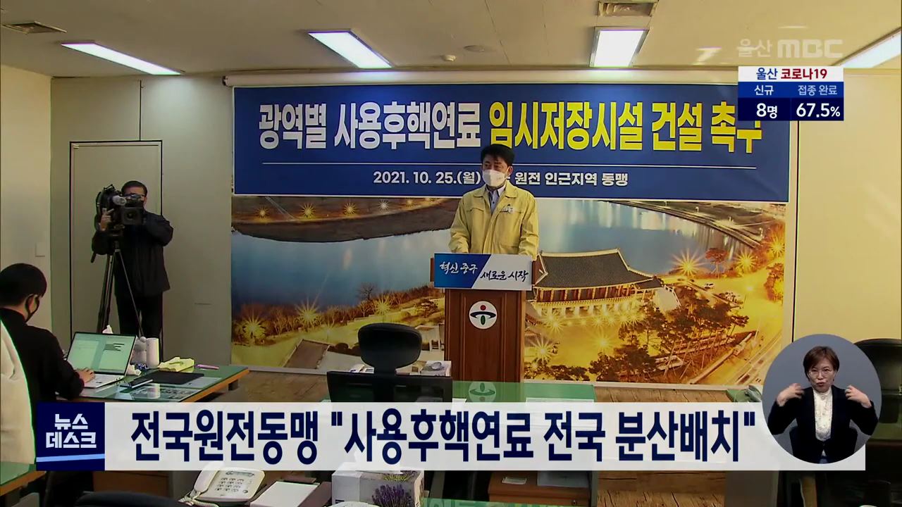 전국 16개 지자체로 구성된 전국 원전 인근지역 동맹이 오늘(10/25) 중구청 프레스센터에서 기자회견을 열고 광역별 사용후핵연료 임시저장시설 설치를 촉구했습니다. 기자회견에 대표로 나선 박태완 중구청장은 사용후핵연료 저장시설은 포화상태지만 아무리 파격적인 인센티브를 제공해도 유치하려는 지자체가 있을 수 없...