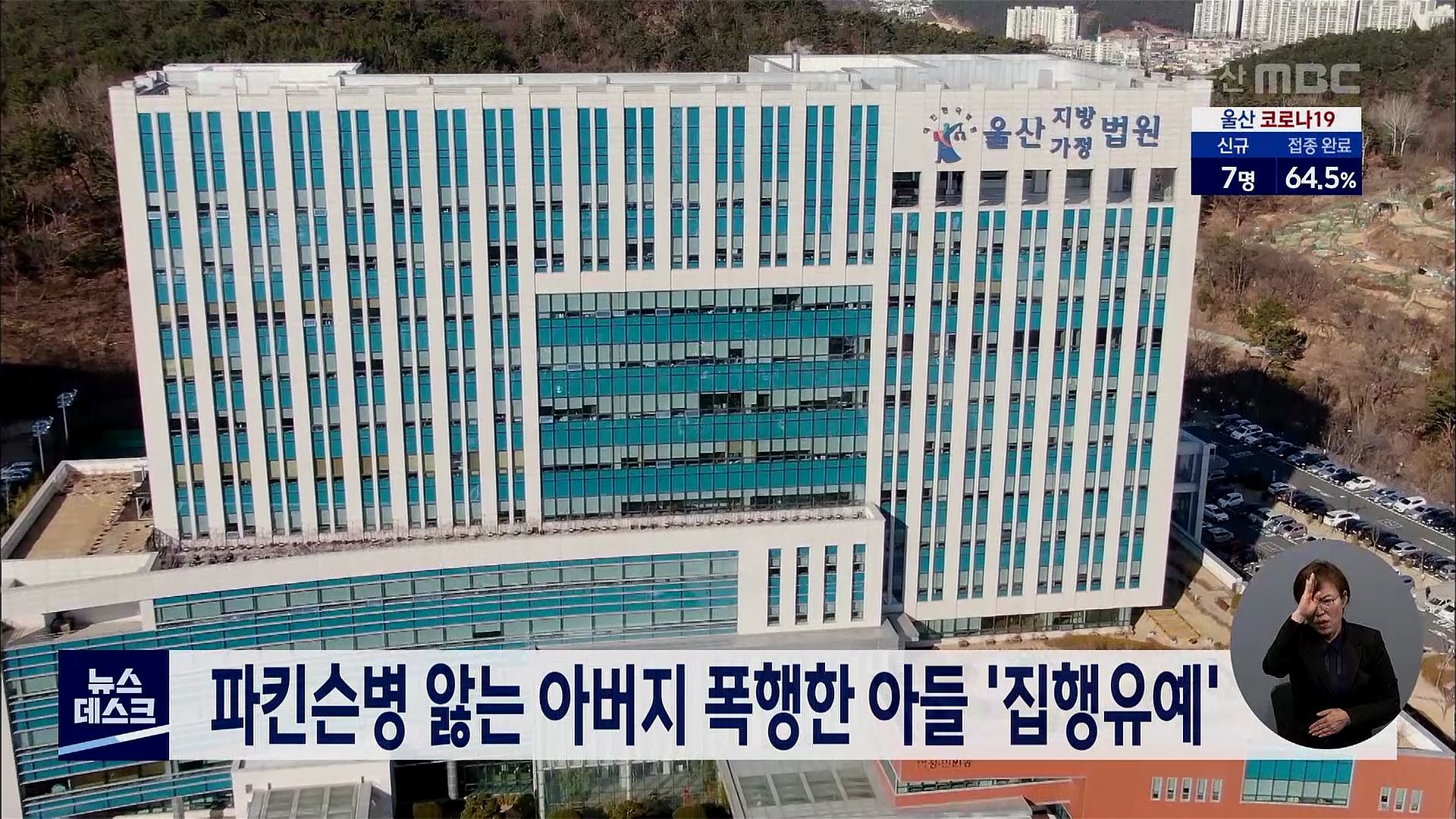 울산지법 형사6단독 김도영 판사는 파킨슨병을 앓는 70대 아버지를 때려 다치게 한 혐의로 기소된 40대 A씨에게 징역 1년에 집행유예 2년을 선고했습니다. A씨는 지난 8월 아버지에게 같이 일을 하러 가자고 했지만 힘이 없어 안 되겠다는 말에 화가 나 6시간 동안 욕설을 하며 아버지를 폭행해 늑골 골절 등의 상해를 가한...