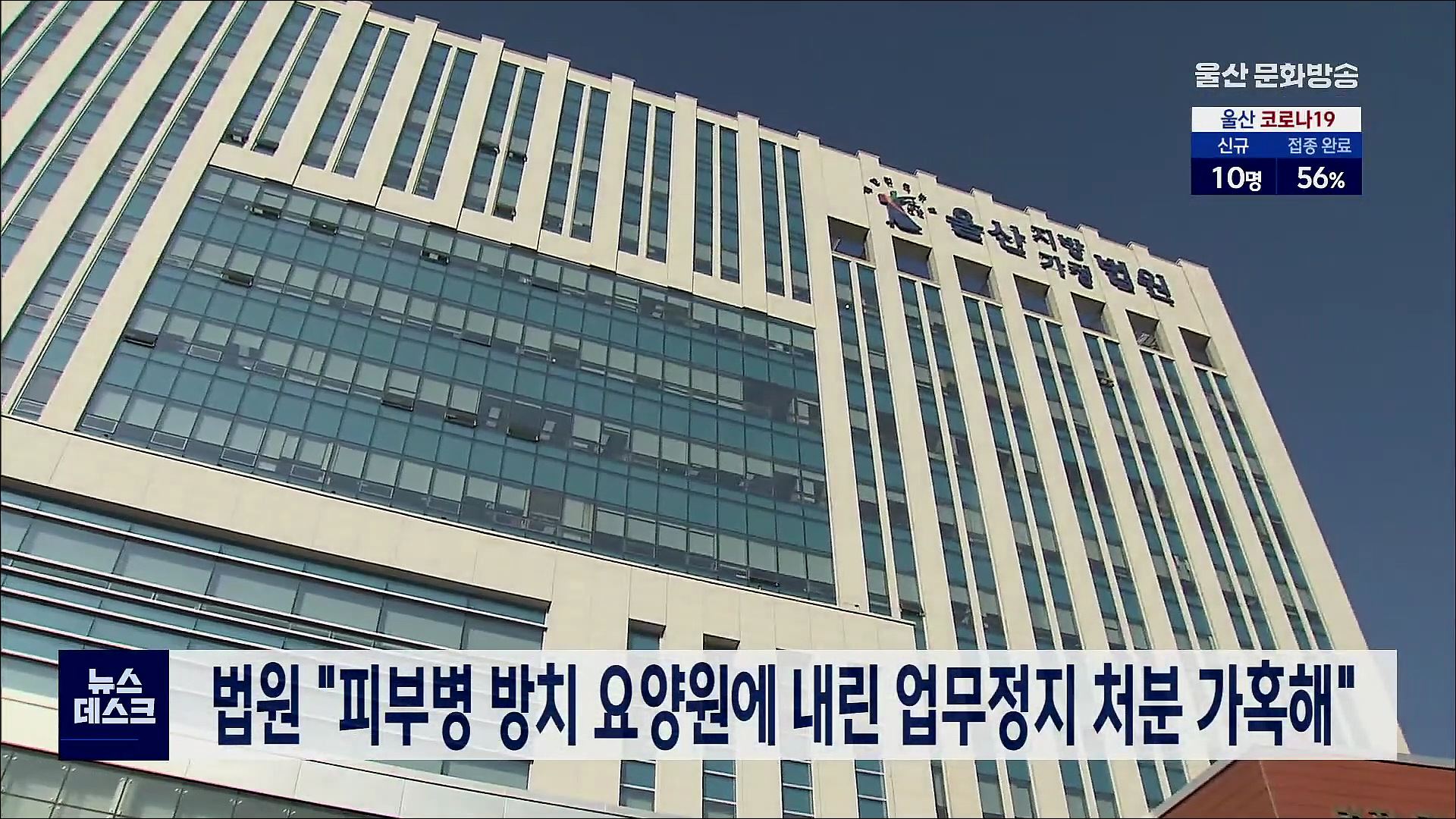 피부질환에 걸린 80대 노인을 방치한 요양원에 내려진 업무정지 처분은 너무 지나치다는 판결이 나왔습니다. 울산지법 행정1부는 요양원 운영자 A씨가 중구청장을 상대로 제기한 업무정지처분 취소소송에서 원고 승소 판결을 내렸습니다. A씨는 지난해 2월 80대 환자를 방치해 피부병이 심해졌다는 보호자의 신고로 업무정...