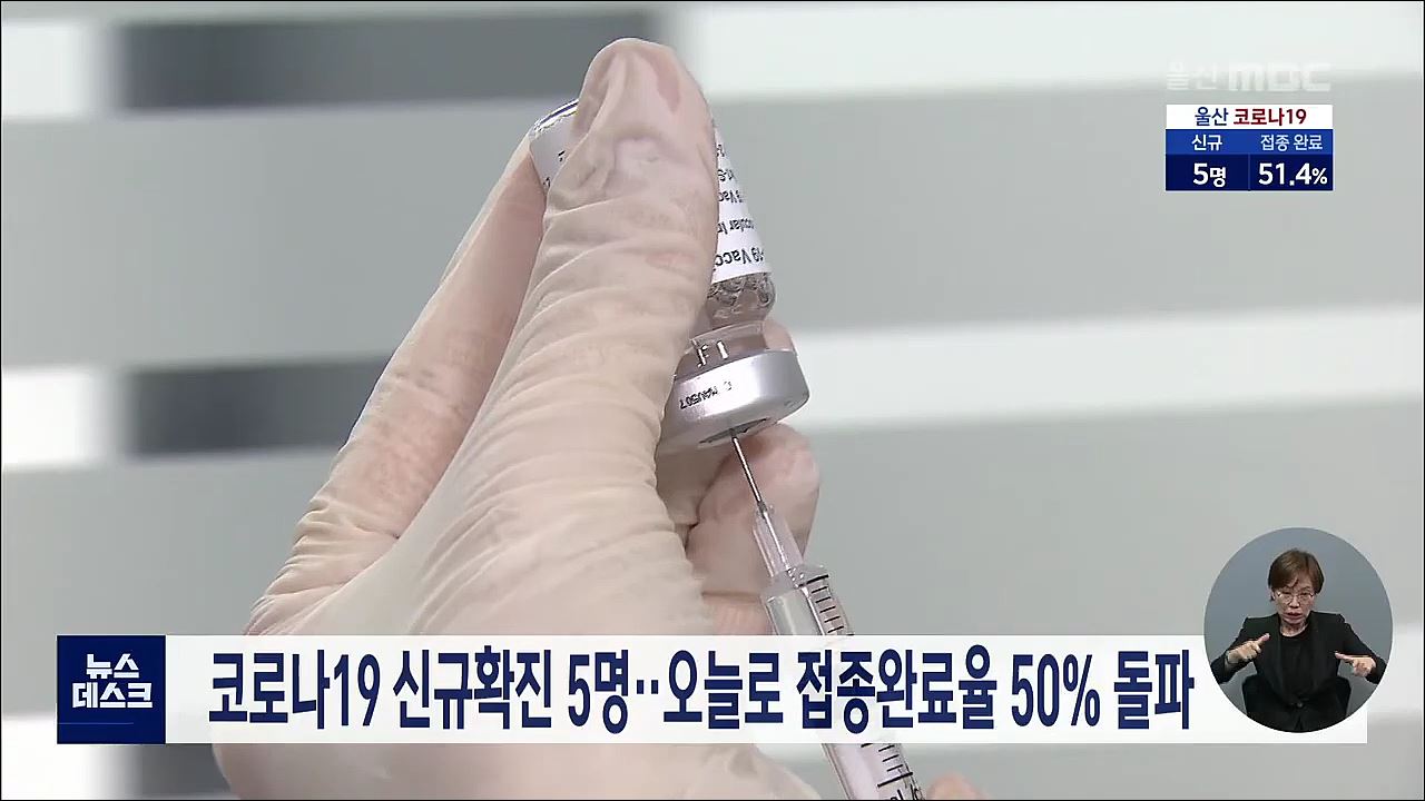 오늘(10/5) 울산에서는 코로나19 신규 확진자가 5명 발생했습니다. 3명은 기존 확진자의 접촉자이고, 2명은 감염 경로를 조사중입니다. 현재까지 울산지역의 코로나19 누적 확진자는 모두 5천 247명입니다. 한편 오늘(10/5) 오후 5시 기준으로 울산지역에서 2차까지 코로나19 백신 접종을 모두 마친 사람의 비율은 51.4%로,...