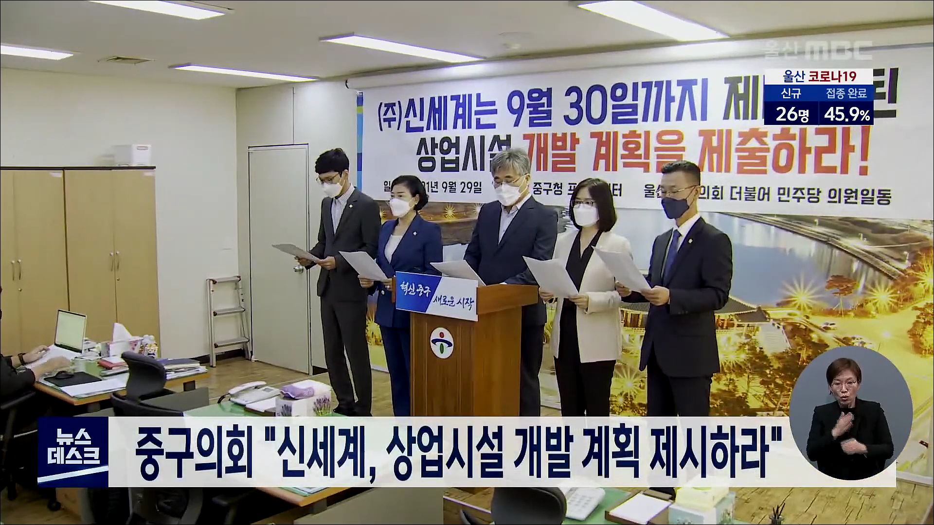 중구가 신세계에 내일(9/30)까지 새로운 혁신도시 부지개발 계획안 제시를 요구한 가운데 오늘(9/29) 중구의회 민주당 의원들이 중구청 프레스센터에서 기자회견을 열고 신세계에 상업시설 개발계획안 제시를 촉구했습니다. 이들은 상업시설이 아닌 주거형 오피스텔을 건설하는 것은 대기업이 지역개발을 빌미로 사익만을 ...