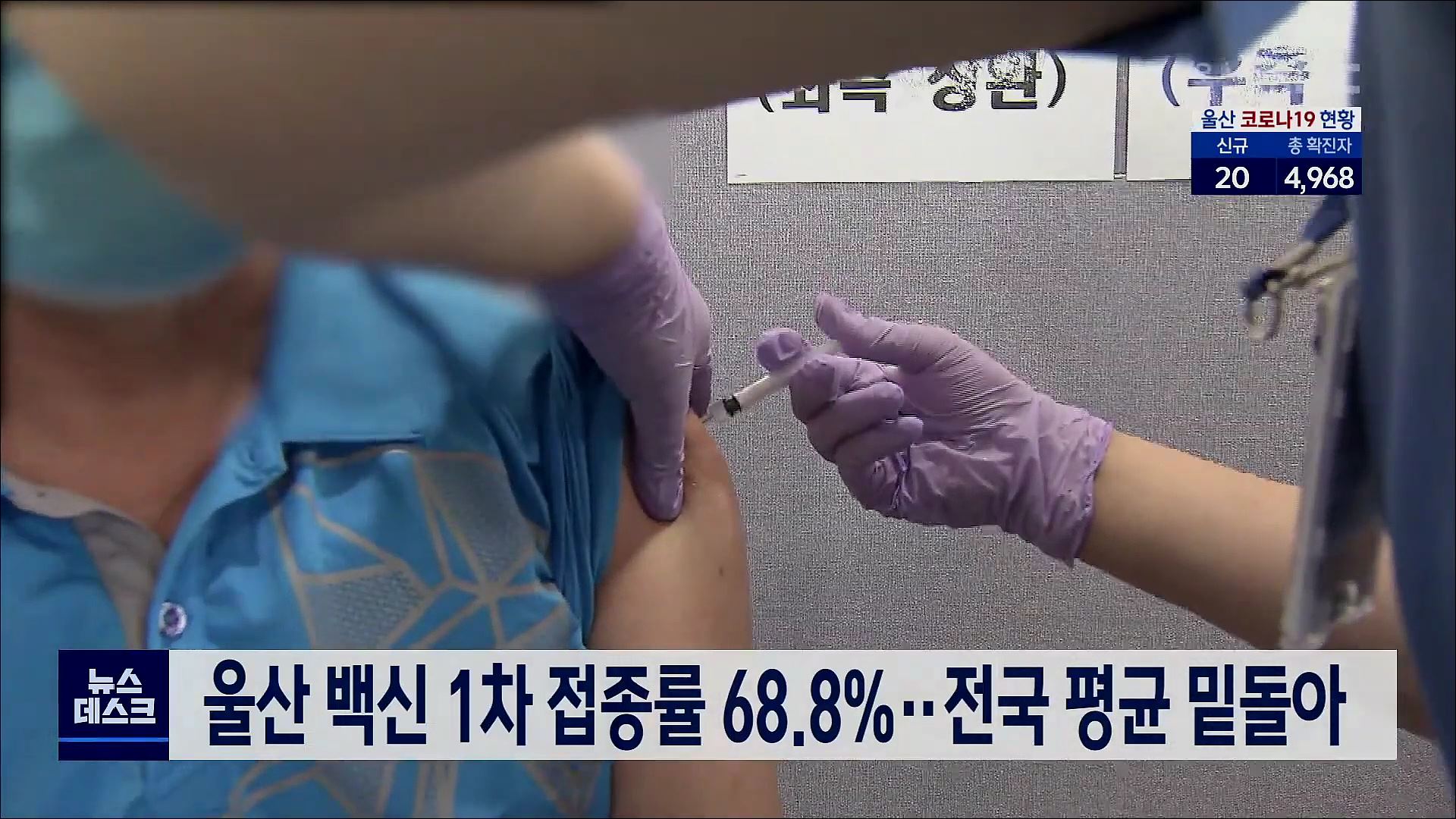 울산 백신 1차 접종률 68.8%..전국 평균 밑돌아