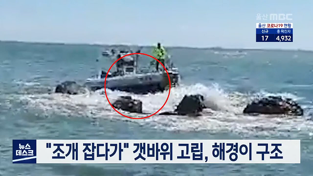 오늘 낮 12시쯤 동구 주전해변 캠핑장 인근 해상에서 39살 A씨가 높은 파도에 휩쓸려 갯바위에 고립됐습니다. 울산해경은 민간 자율구조선과 협조해 1시간 10분 만에 A씨를 구조했습니다. A씨는 조개를 잡으러 바다에 들어갔다가 파도에 휩쓸려 갯바위에 고립됐습니다.