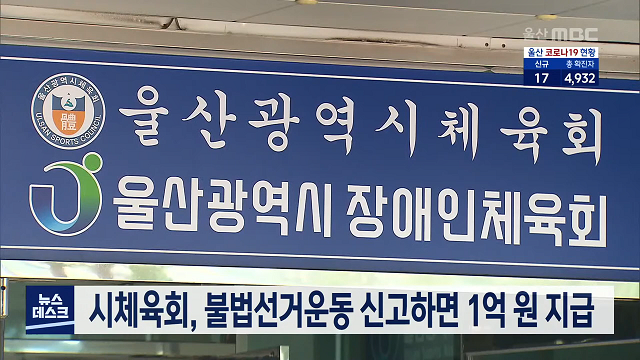 시체육회, 불법선거운동 신고하면 1억원 지급