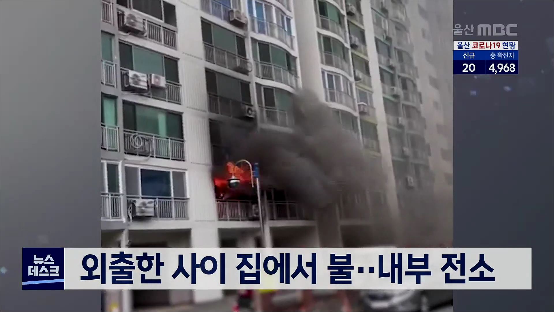 오늘(9/21) 오전 10시 5분쯤 울주군 언양읍 서부리의 한 아파트 2층에서 불이 나 아파트 내부를 모두 태워 소방서 추산 9천 6백만 원의 재산 피해를 내고 35분만에 꺼졌습니다. 소방당국은 불이 났을 당시 이 아파트에 사는 가족들은 외출 중이었던 점 등을 토대로 가전제품에서 불이 시작된 것으로 보고 화재 발생 경위를 ...