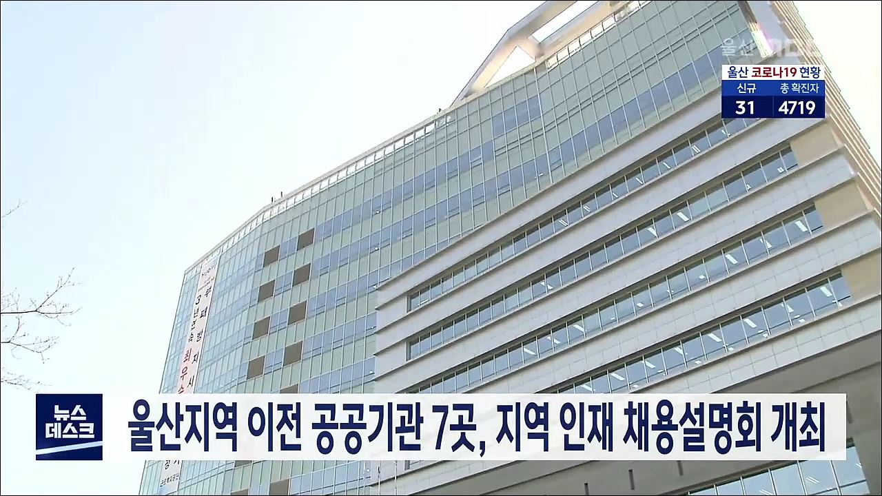 울산지역 이전 공공기관들이 울산과 경남지역 청년을 대상으로 온라인 채용설명회를 진행합니다. 이번 설명회에는 근로복지공단과 한국석유공사, 한국산업인력공단 등 울산지역 이전 공공기관 7곳이 참여해 기관 현황과 채용 전형을 소개합니다. 또 지역 대학 졸업생 출신 직원들이 직접 공공기관의 직무를 소개하고 취업 ...