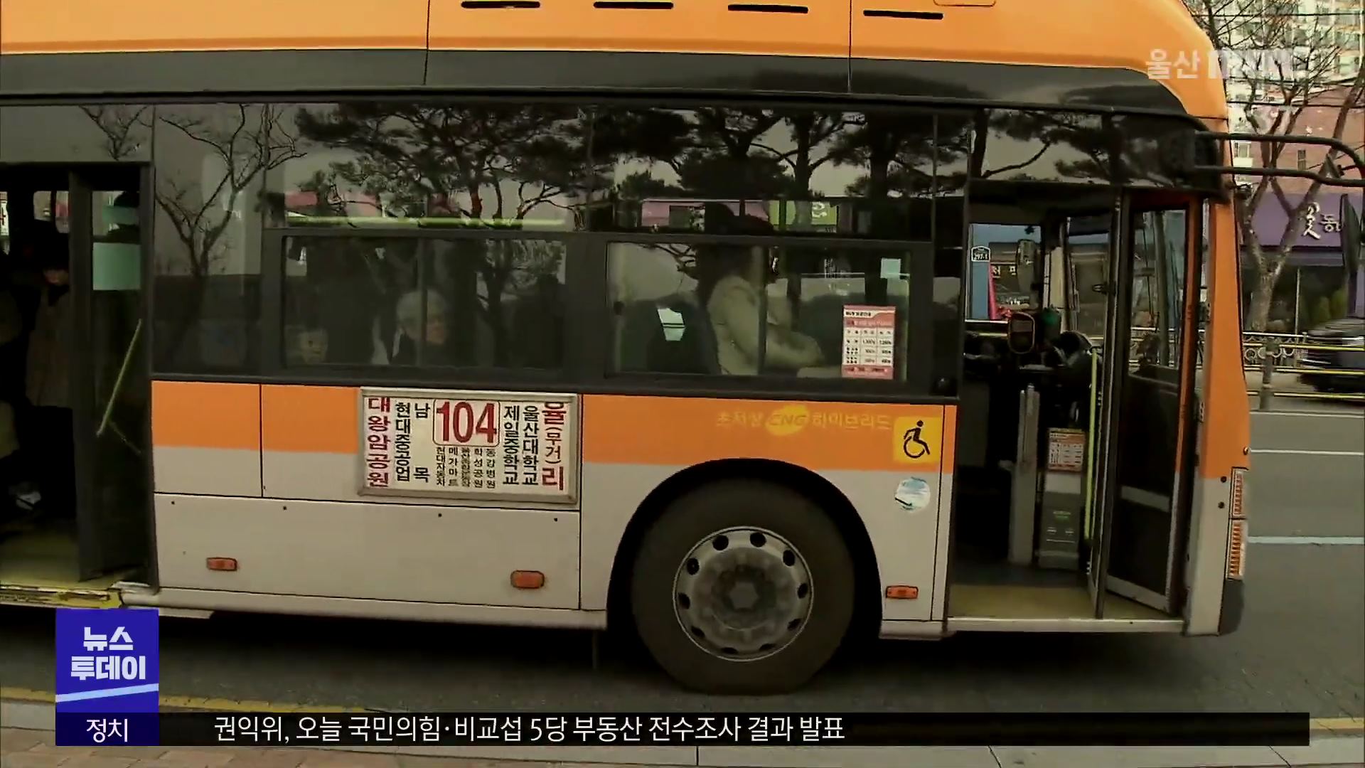 울산의 교통약자를 위한 '저상버스' 도입률이 전국 최하위 수준으로 나타났습니다. 국토교통부 자료에 따르면 저상버스 도입 목표는 작년 기준 전체 시내버스의 36% 였지만 작년 말 도입률은 28.8%에 그친 것으로 집계됐습니다. 시도별로 보면 울산은 12.2%로 전국 17개 시도 중 10%를 기록한 충남에 이어 두번째로 낮은 것...