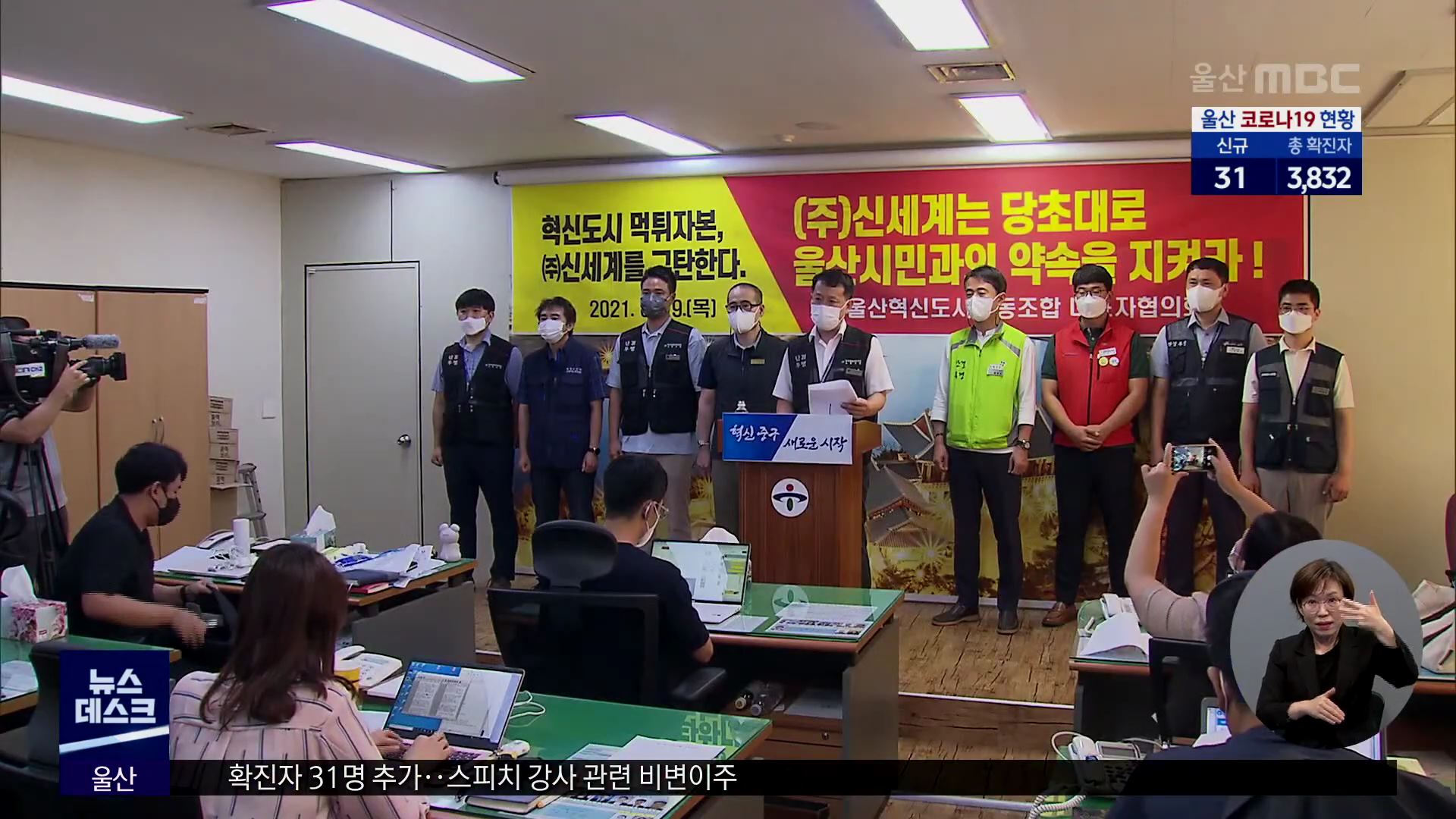 한국산업인력공단을 포함한 8개 이전공공기관 노조위원장 모임인 울산혁신도시노동조합 대표자협의회는 오늘(8/19) 중구청 프레스센터에서 기자회견을 열고 신세계의 오피스텔 개발 계획을 규탄했습니다. 이들은 혁신도시 상업시설 부지에 오피스텔을 짓겠다는 계획을 철회할 것을 촉구하며 약속을 이행하지 않겠다면 해당 ...