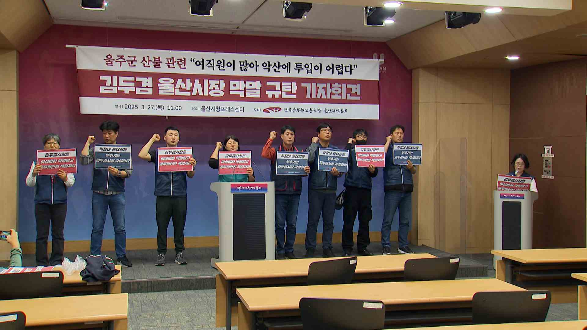여성 공무원이 많아 산불 진화 작업이 쉽지 않다는 김두겸 울산시장의 발언과 관련해 논란이 이어지고 있습니다. 전국공무원노동조합 울산지역본부와 여성단체 등은 기자회견을 잇따라 열고 김 시장의 성차별 발언을 규탄한다며, 안전 장비도 제대로 지급되지 않는 현장을 돌아보라고 요구했습니다. 이에 대해 울산시 공무...