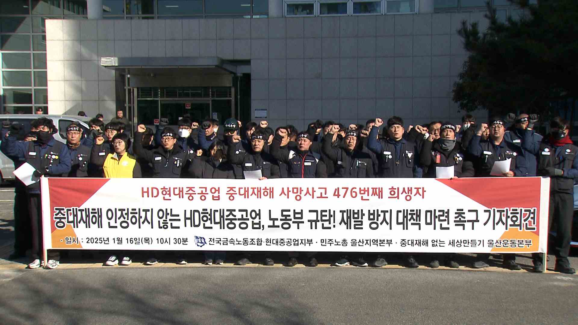 진보당 울산시당은 오늘(1/16) 기자회견을 열고 지난달 HD현대미포에서 발생한 청년 잠수사의 작업 중 사망사고에 대한 책임자 엄중 처벌을 촉구했습니다. 이들은 울산해경과 부산고용청이 사고 당일 무리한 잠수 작업이 없었는지 진상을 규명해야 한다며, 원하청 사업주를 중대재해기업 처벌법에 따라 구속 수사하라고 요...
