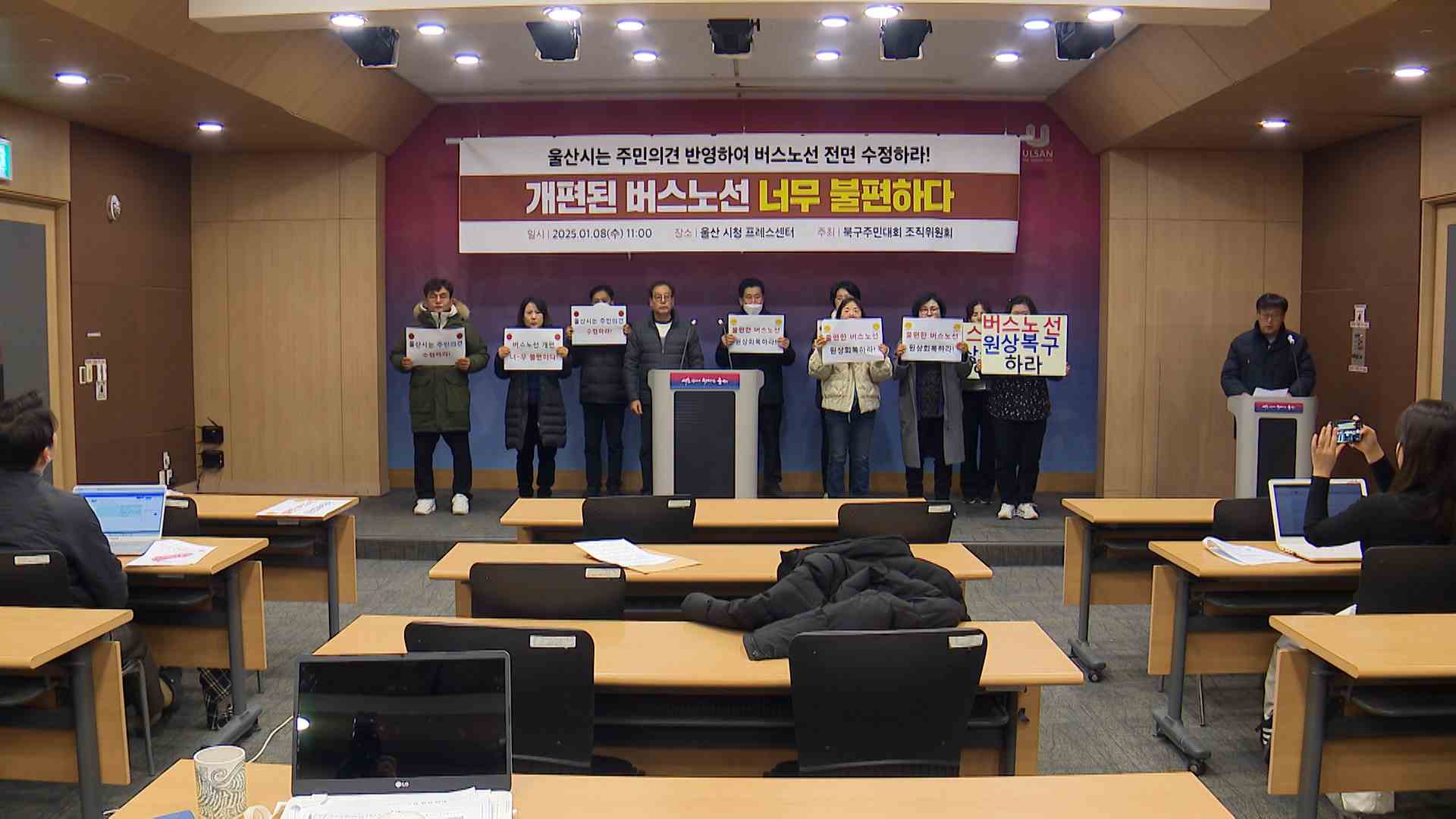울산 북구주민대회 조직위원회는 오늘(1/8) 기자회견을 열고 울산시는 버스노선을 다시 개편해야 한다고 주장했습니다. 주민대회 조직위는 북구 주민 365명을 대상으로 설문조사를 한 결과 353명, 97%가 버스노선 개편 이후 더 불편해졌다는 응답을 했다고 강조했습니다. 또 설문조사 세부 내용과 주민 건의사항 20여건을 ...