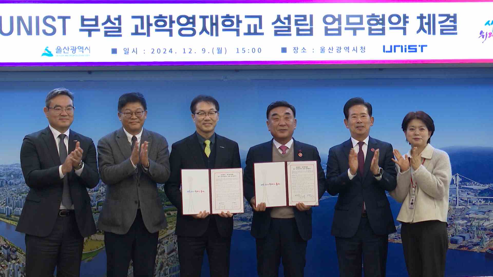 김두겸 울산시장과 박종래 유니스트 총장이 오늘(12/9) 업무협약을 맺고 과학영재학교 설립에 협력하기로 했습니다. 과학영재학교는 정원 240명 규모, 오는 2029년 개교를 목표로 추진되며 대상 부지와 시설 규모 등은 연구용역에서 결정할 예정입니다. 울산시는 과학영재학교 설립의 당위성을 정부에 설득하고 시민 공감대...