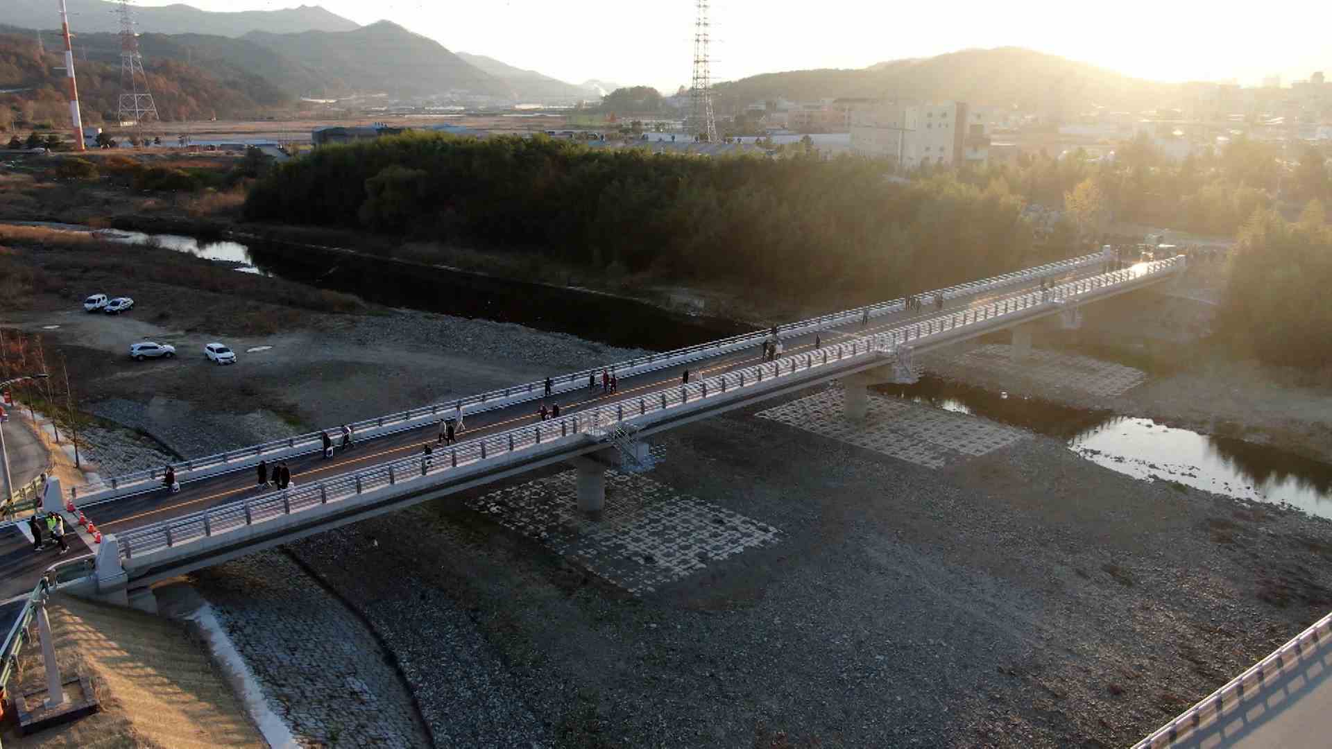 울주군 웅촌면 곡천리와 초천리를 연결하는 신 초천교 개통식이 오늘(12/4) 열렸습니다. 신 초천교는 길이 128m에 폭 10m로, 사업비 76억 원이 투입됐습니다. 옛 초천교는 1990년에 설치된 노후 교량으로, 홍수위보다 교량의 높이가 낮아 교량 위로 하천이 범람하는 등 안전사고 위험이 높았습니다.