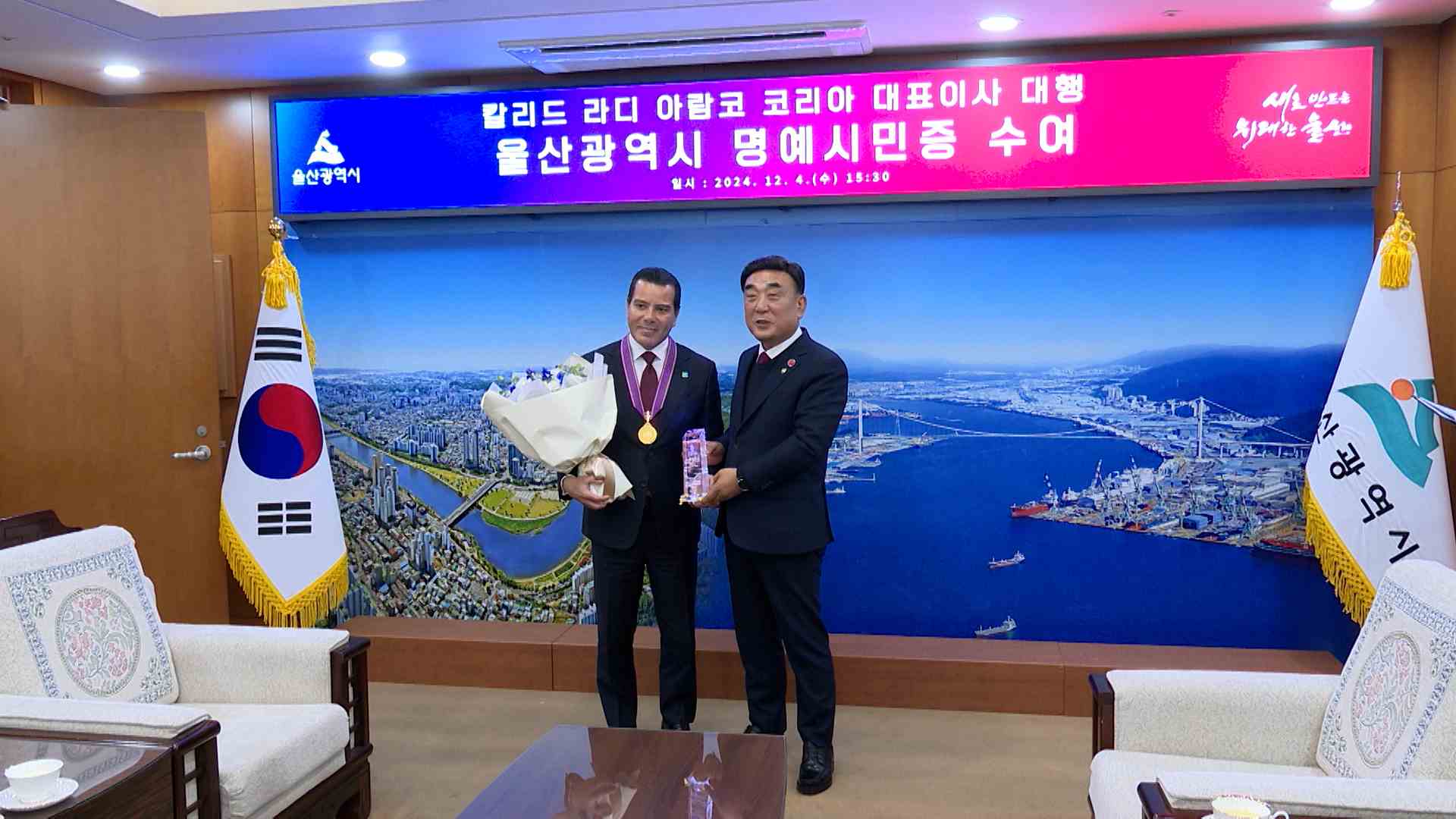 울산시가 아람코 코리아의 칼리드 라디 대표이사 대행을 명예시민으로 정했습니다. 아람코 코리아는 지난 2021년부터 등하교길 안전시설 조성과 플라스틱 재활용 사업 등 울산에서 사회 공헌 활동을 펼쳐 왔습니다. 명예시민은 울산 시정 발전에 공로가 큰 외국인 등에게 주어지며, 울산시로부터 각종 예우를 받게 됩니다.