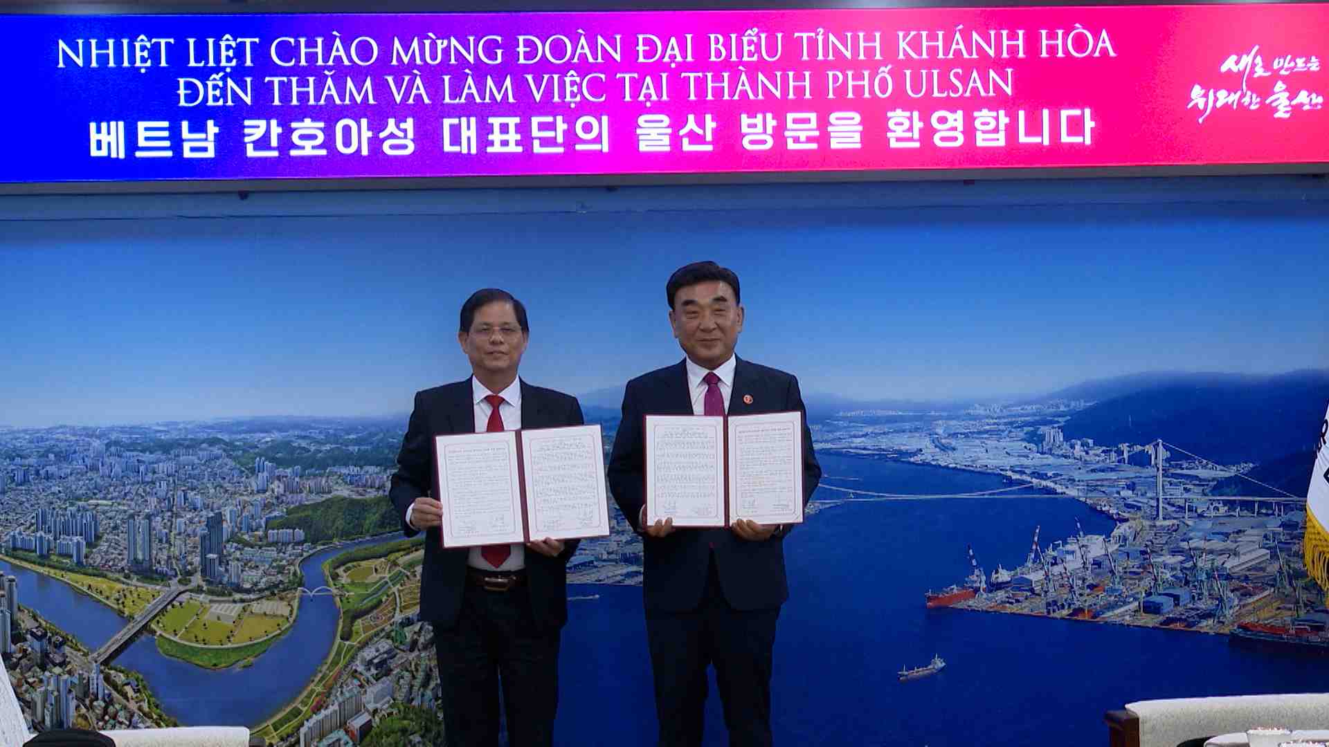 울산의 자매도시인 베트남 칸호아 성 대표단이 울산시를 방문했습니다. 두 도시는 오늘(9/23) 양해각서를 체결하고, 관광과 인적자원 개발 등 다양한 분야에서 교류를 늘리기로 했으며, HD현대미포를 찾아 조선업 협력 방안을 논의했습니다. 베트남 칸호아 성은 지난 2002년 울산과 자매결연을 맺었으며, 현재 칸호아 성 출...