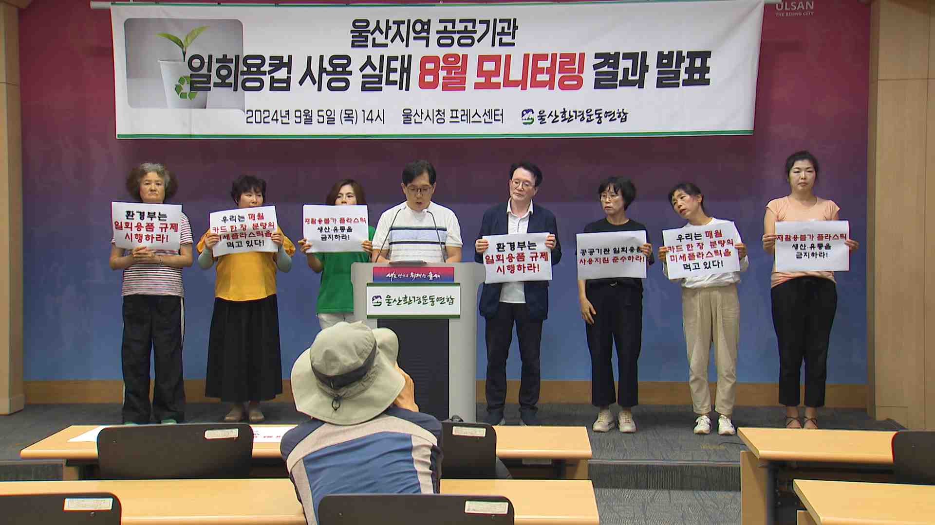 울산지역 공공기관 가운데 일회용컵 사용률이 가장 높은 곳은 동구라는 조사 결과가 나왔습니다. 울산환경운동연합은 지난달 26일부터 사흘간 울산지역 7개 공공기관을 대상으로 조사를 벌인 결과 동구가 89.4%로 일회용컵 사용률이 가장 높았다고 밝혔습니다. 반면 울산시교육청은 조사 기간 동안 일회용 컵 사용자가 힌 ...