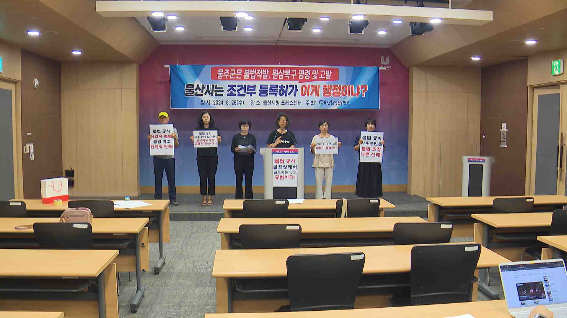울산환경운동연합이 개장 행사를 한다고 알려진 망양골프장의 조건부 등록 허가를 규탄했습니다. 환경운동연합은 불법공사에 대한 원상복구 명령을 다 이행하지 않고 수사도 종결되지 않은 골프장에 울산시가 조건부 등록을 허가한 것은 사업자 봐주기라고 주장했습니다. 이에 대해 울산시는 관련 법상 사업기간 내 나머지 ...